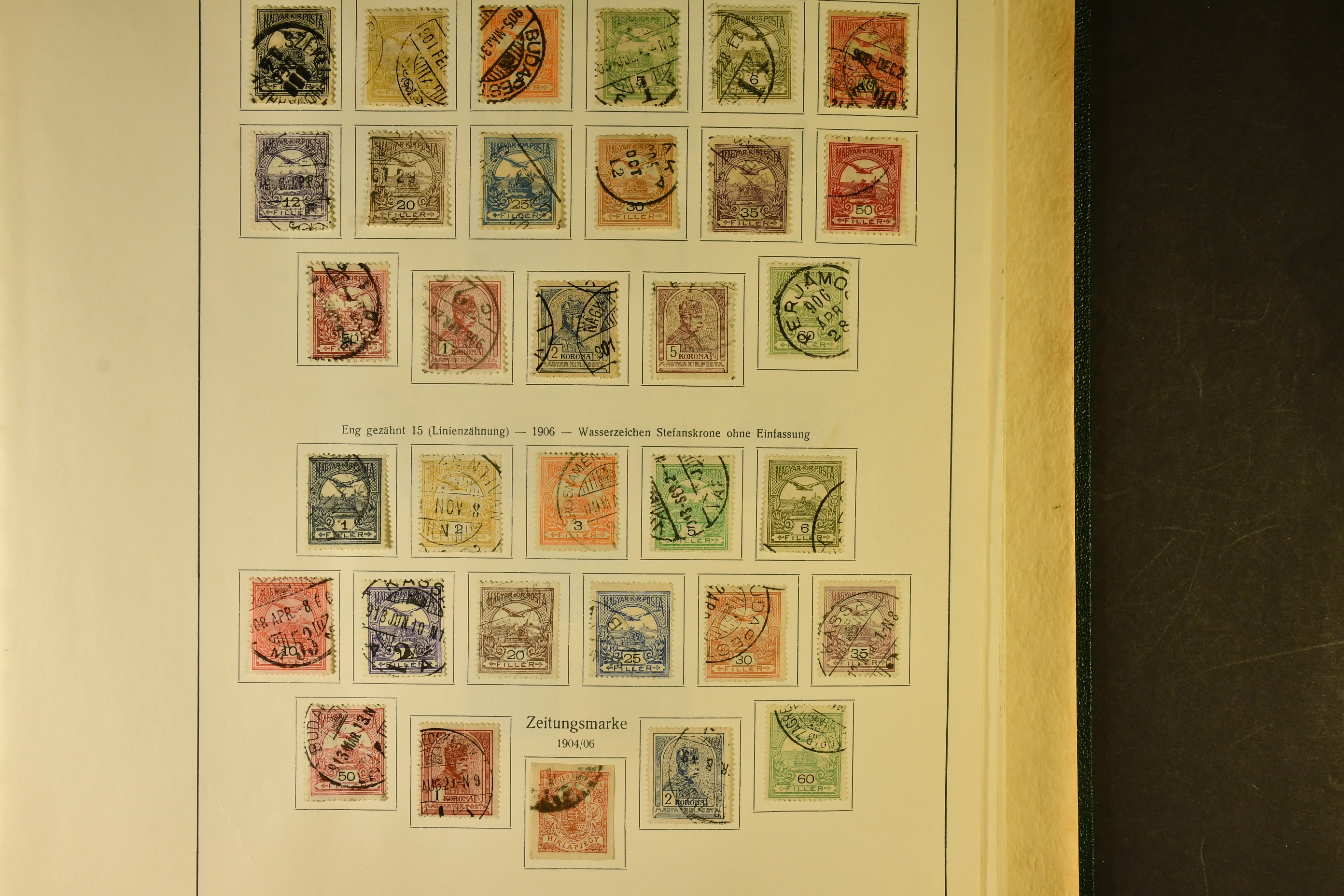 Hungary. Collection mostly used 1871-1950 in KABE album. E.g. a nice section Franz Josef first and second issue (slightly mixed quality), good range off the letter issues , later more or less complete and also with dues etc. Furtuer several s/s incl #1 etc. A clean and good collection to be recommended. Fine quality.