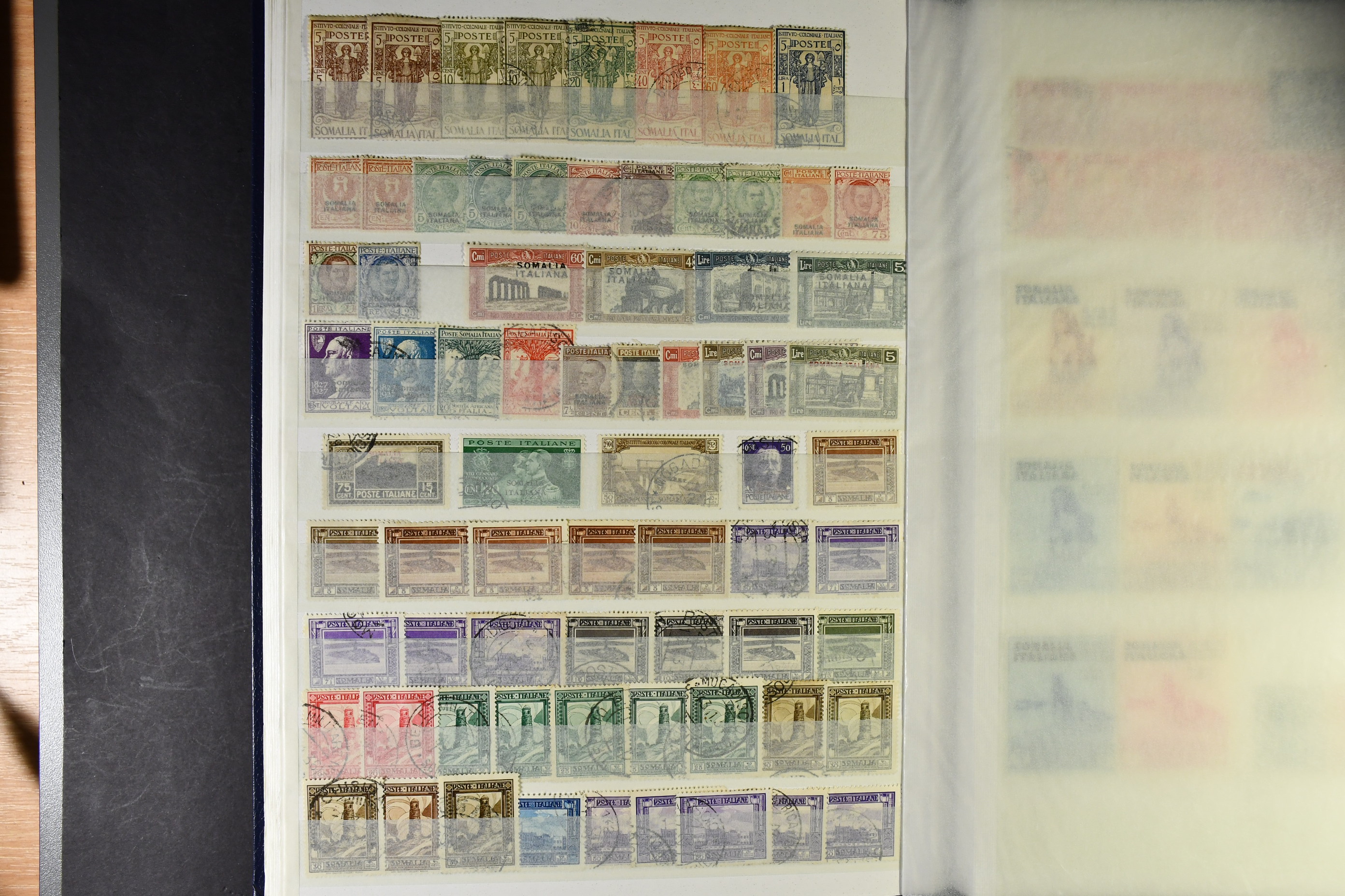 Italian colonies. Collection/accumulation ★★/★/⊙ Classics-about 1940 in large stockbook. Interesting with some slight duplication incl sets and medium priced/better values. E.g. Italian Eritrea, -Libya, -Somaliland, , -Tripolitanien, etc. Also som Aegean Islands, BLP OVERPRINTS Italian fiscals etc. High value! Fine quality. (2000)