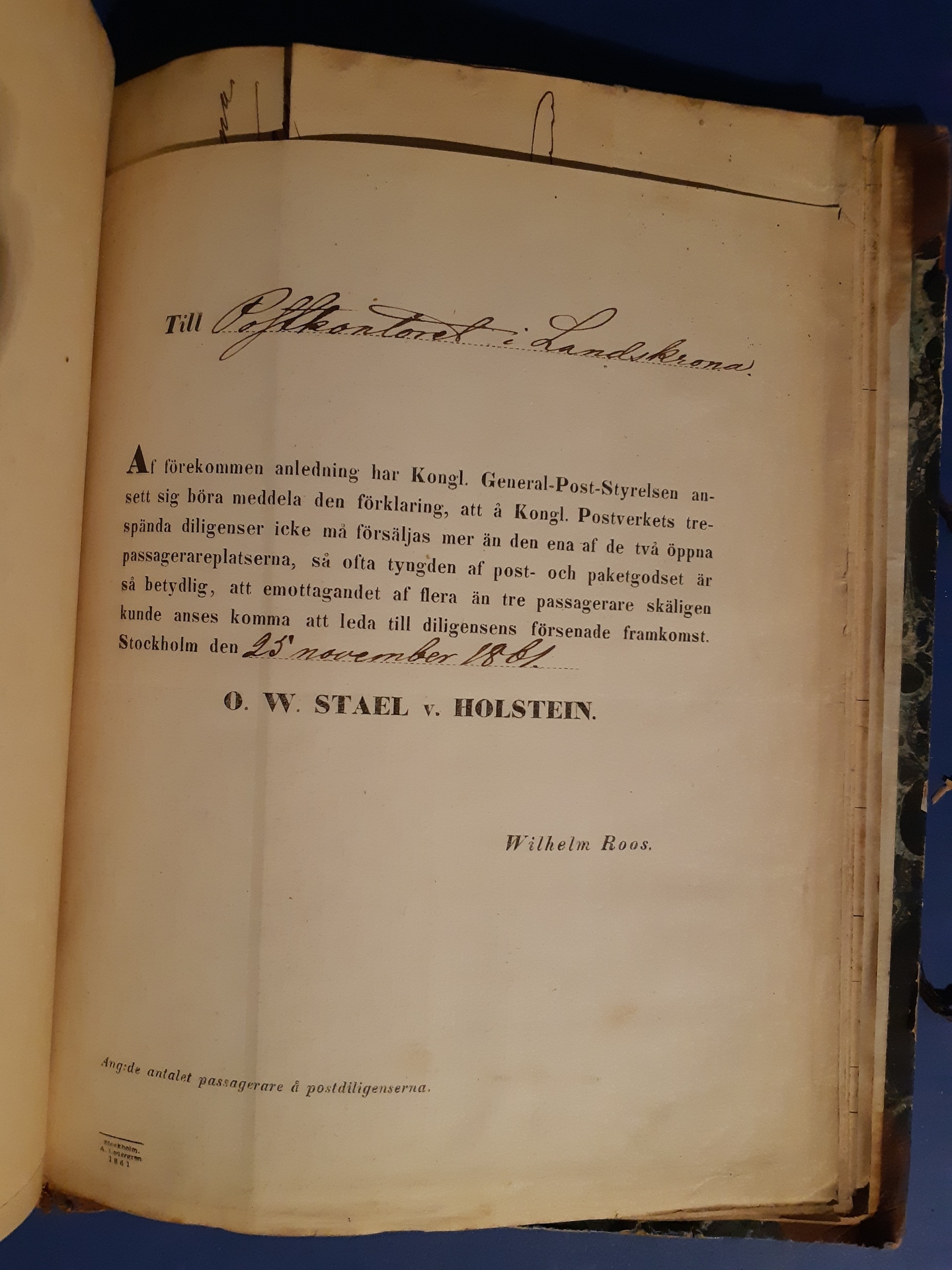 Literature. 'KONGL. GENERAL-POST-STYRELSENS CIRKULÄR ÅR 1861' and ditto '1862', two hardbound volumes, incl. e.g. interesting handwritten correspondence from KGPS to the postoffice in Landskrona, tables of local post conveyance in Skåne, forms and other. Looks interesting. (2).