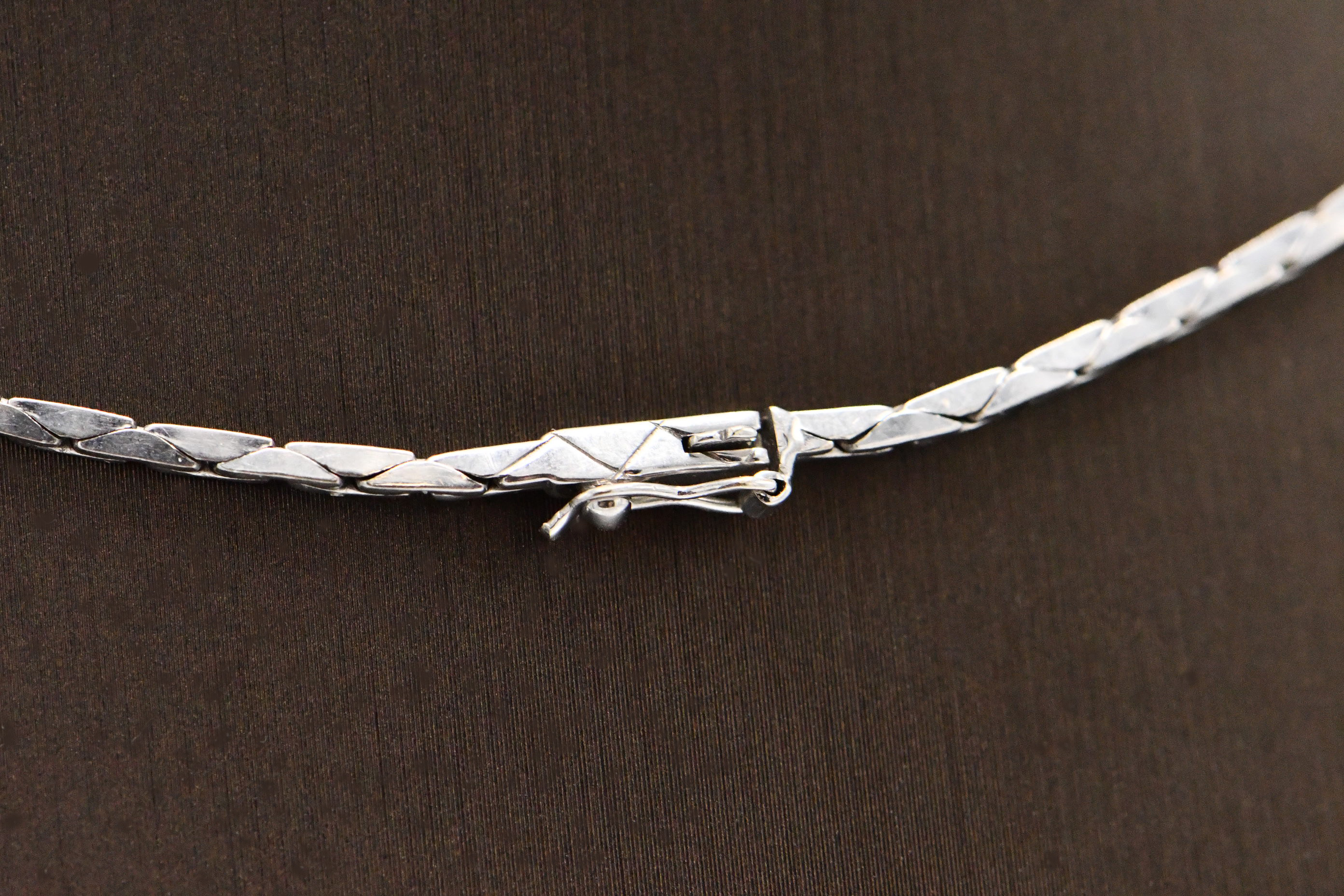 Collier, Other. White gold choker with three diamonds 0,10 ct and a ruby.