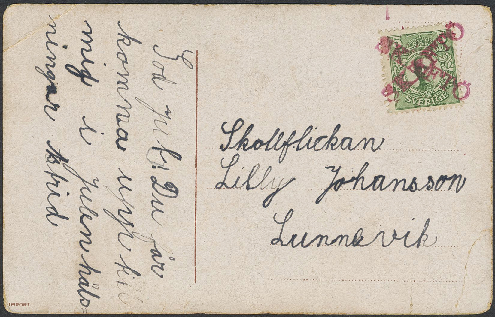 Sweden. Facit 79. Cancellations, SKAFTÖ. Fantasy single line cancel in violet colour on postcard. Creases.