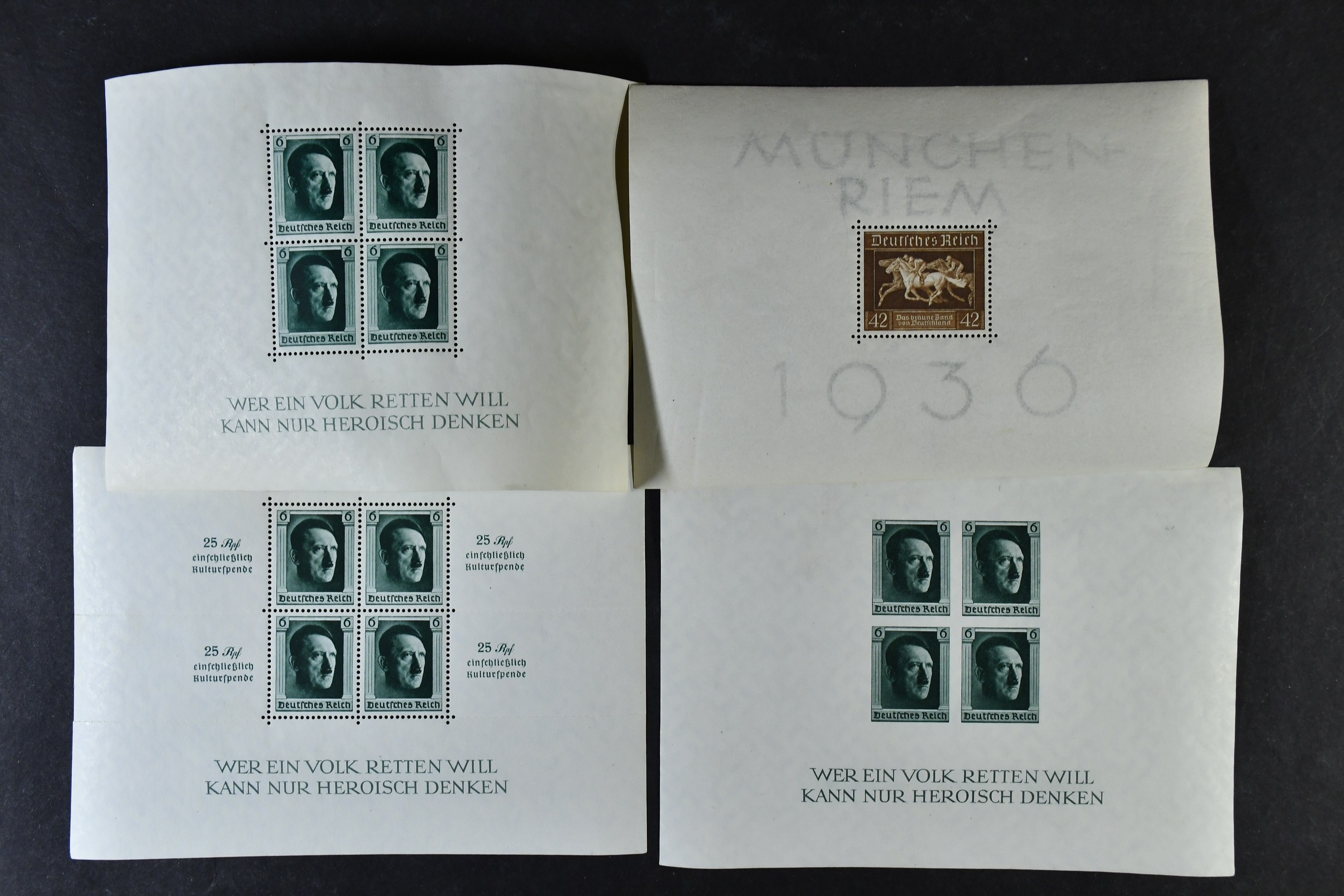 Germany, Reich. ★ 1874–1937. All different, e.g. Mi 30(*), 96-97, 354, 436, 438y(spot), 479-81, 556-54, souv. sheet 7-10. Mostly good quality. Mi € 1050 (30)