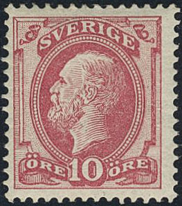 Sweden. Facit 39 ★★, 1885 Oscar II, letterpress 10 öre red. SEK 6500