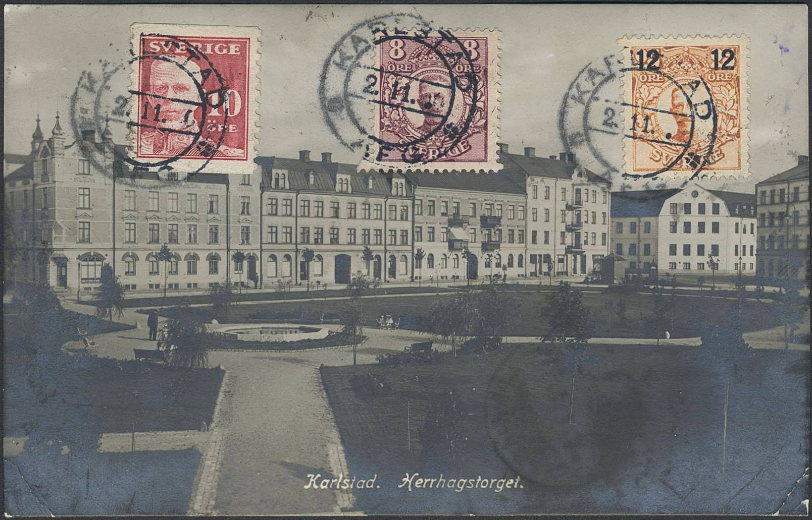 Sweden. Facit 81, 100, 149A on cover, 8+10+12/25 öre as correct postage on registered postcard sent from KARLSTAD 2.11.20 to DJIBOUTI, then forwarded to ADDIS ABEBA 11.12.20. Refused and returned with transit pmk YOKOHAMA A MARSEILLE No 8 8.1.21. The ONLY RECORDED pc sent to the French Somaliland. Depicted in Ferdén.