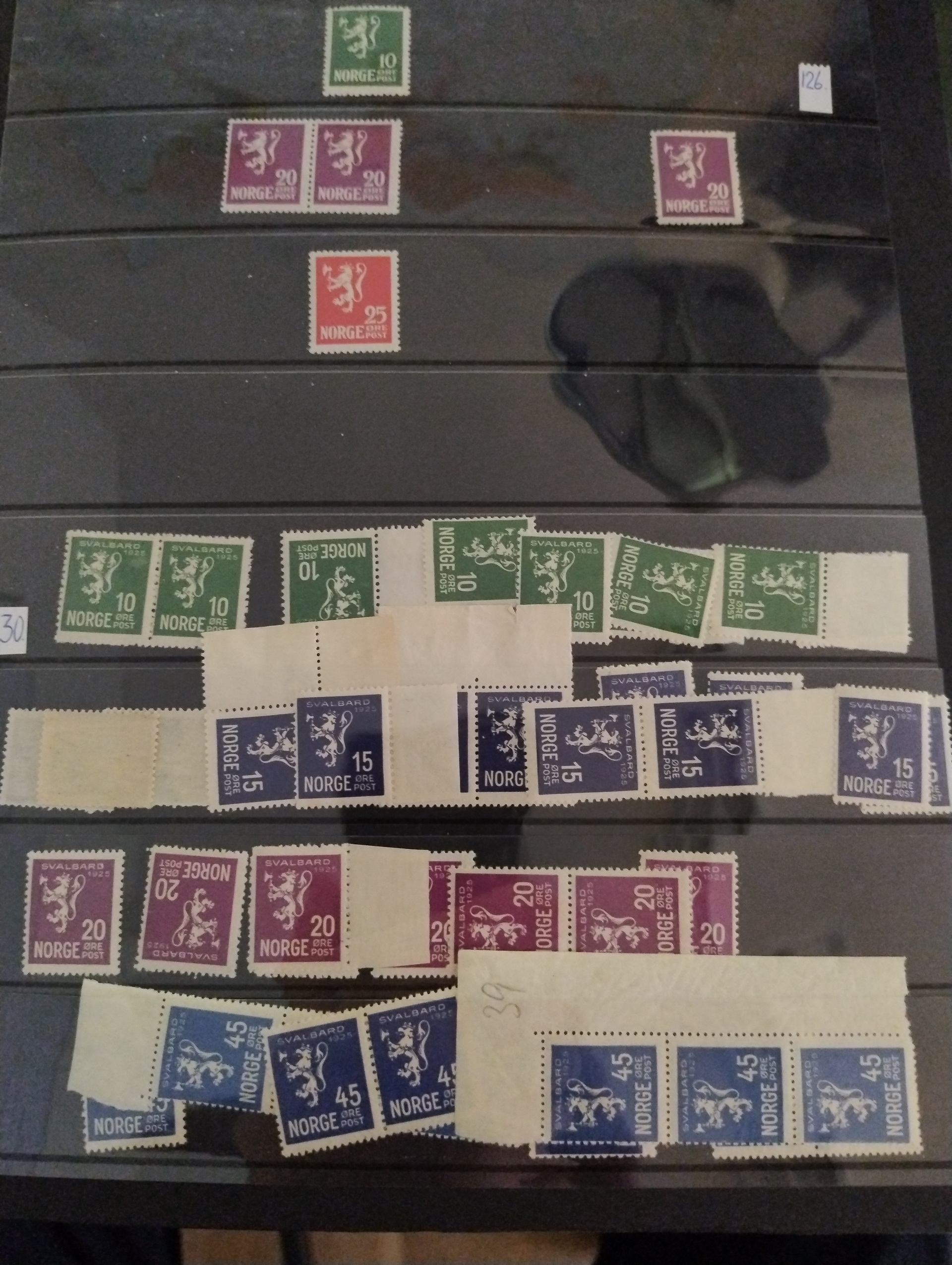 Norway. Accumulation ★★/★ 1863–1979 in four visir albums. Extensive stock incl. better stamps and sets. In the beginning mostly *, after 1920s mixed */** and after 1960 mostly **. Mostly fine quality. Approx. 8 kg. (10000s)