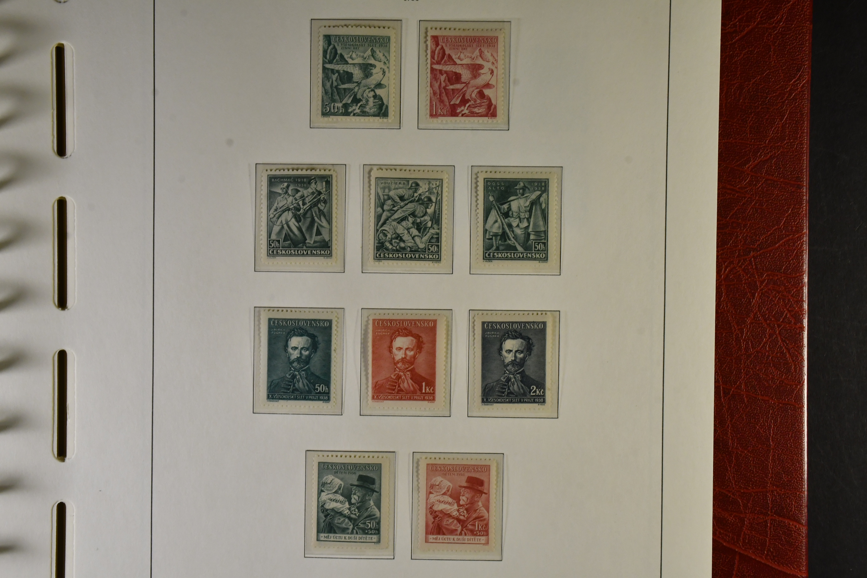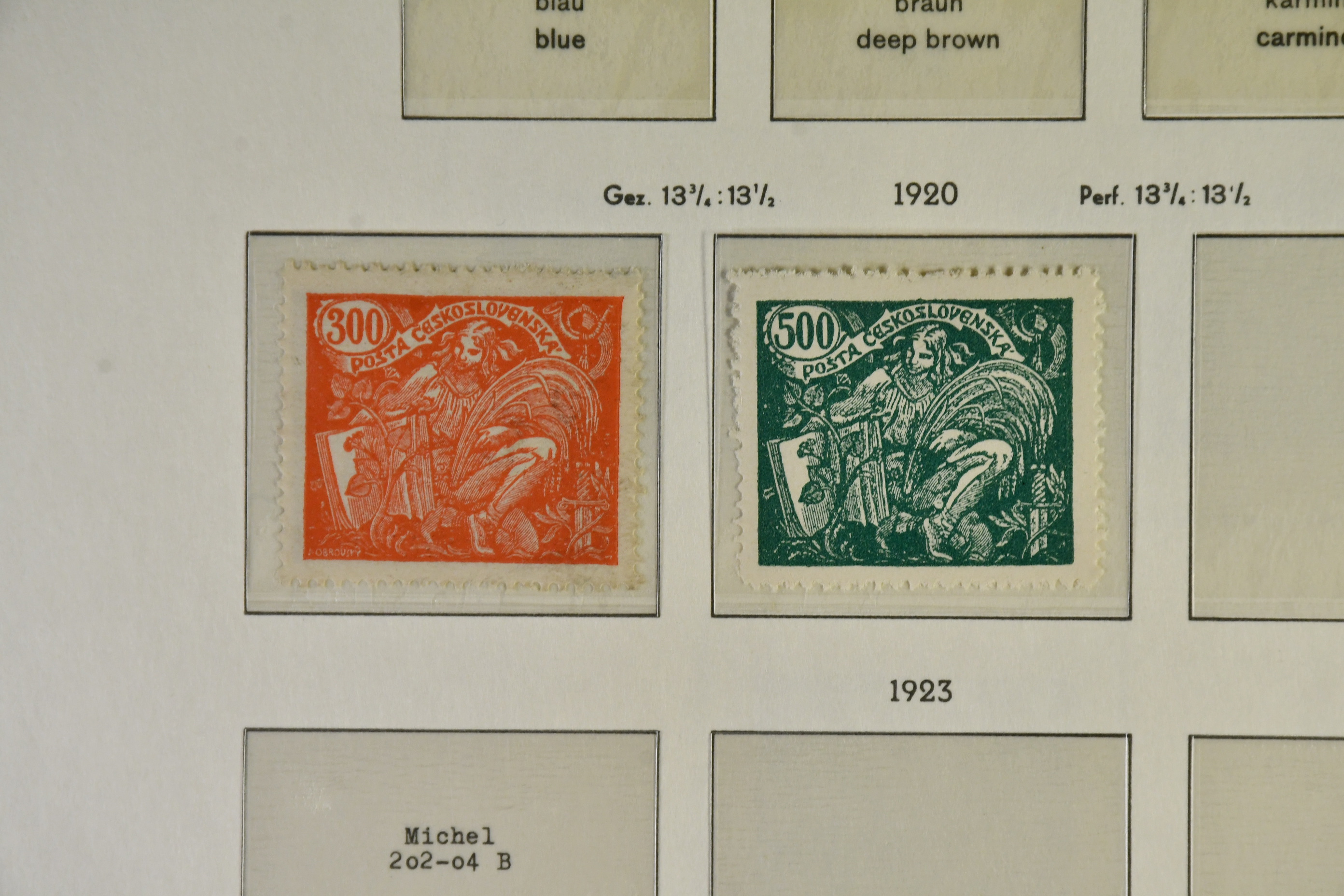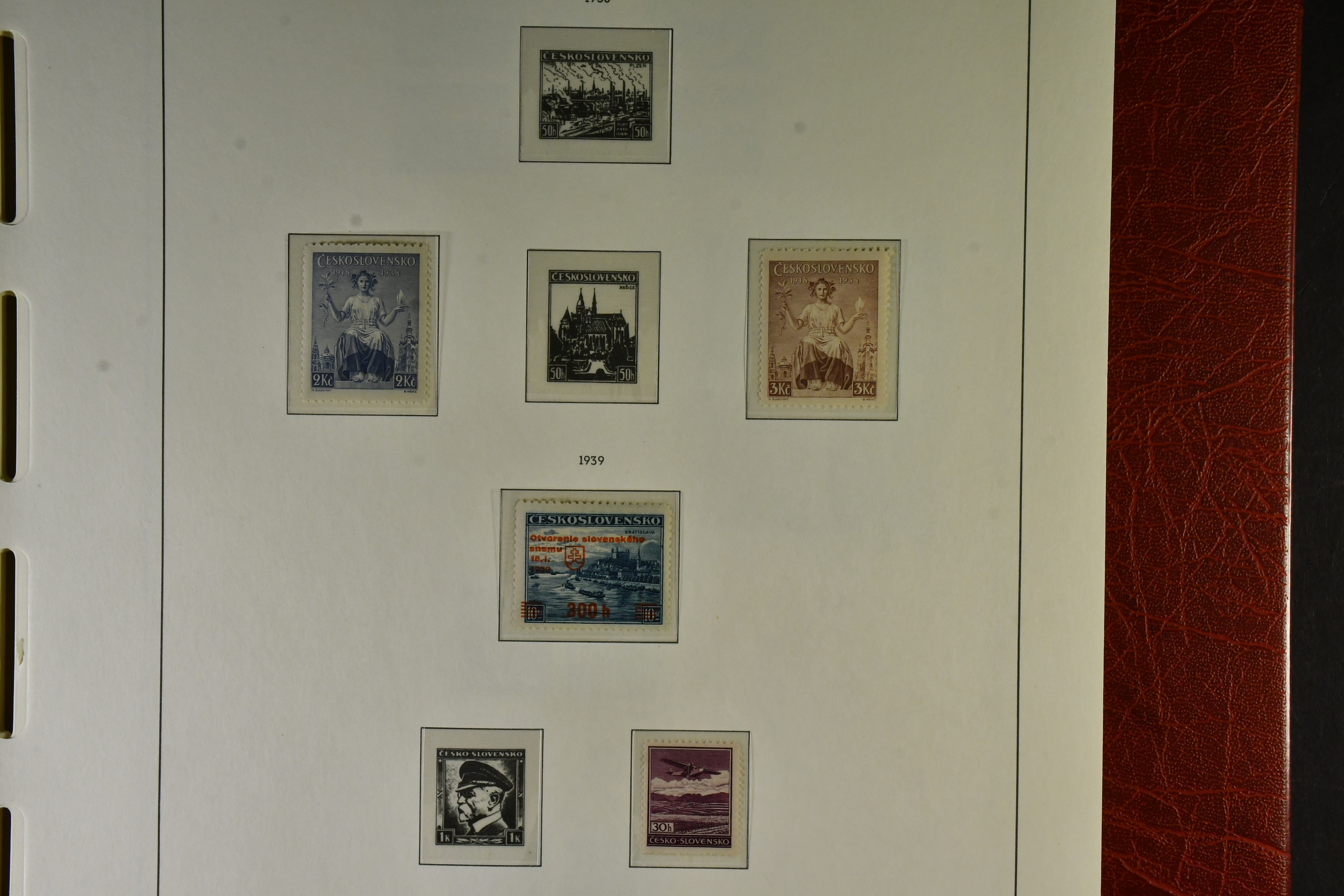 Czechoslovakia. ★★/★/⊙. A superb collection housed in 7 pristine lighthouse albums, all mint overwhelmingly MNH including Bohemia and Moravia, virtually complete inc the first definitive set with signatures, as well as Slovakia, again with the first definitive set with signatures, Czechoslovakia itself also in the first book with a range of 'Posta Ceskoslovenksa 1919' o/ps, the 1920s and the first airmail set imperforate again signed and a double signature on the scarce perf 13 ¼ airmail 1921, leading on to the Praha complete and much more. The 1st album for which is catalogued in Michel is a low, in our opinion, €1734 euro. The 2nd album 1945 to 1960s cats €2280 euro with good miniature sheets and is virtually complete page for page. The 3rd album 1960-1969 cats €2012 and has some interesting special printing miniature sheets (as well and no empty spaces at all). The 4th album with1970 to 1975 cats €1067, again complete. Album 5, 1975 to 1979, again complete cat €1170 ending with album 6, 1980 to 1984 similarly complete cats €990, euro and finally album 7 1985 onwards cats €1430. The albums alone cost the equivalent of €700++ and the collection itself catalogues well over €10,000. A great opportunity to buy one mans lifetime collection very well presented, a must sell instruction.