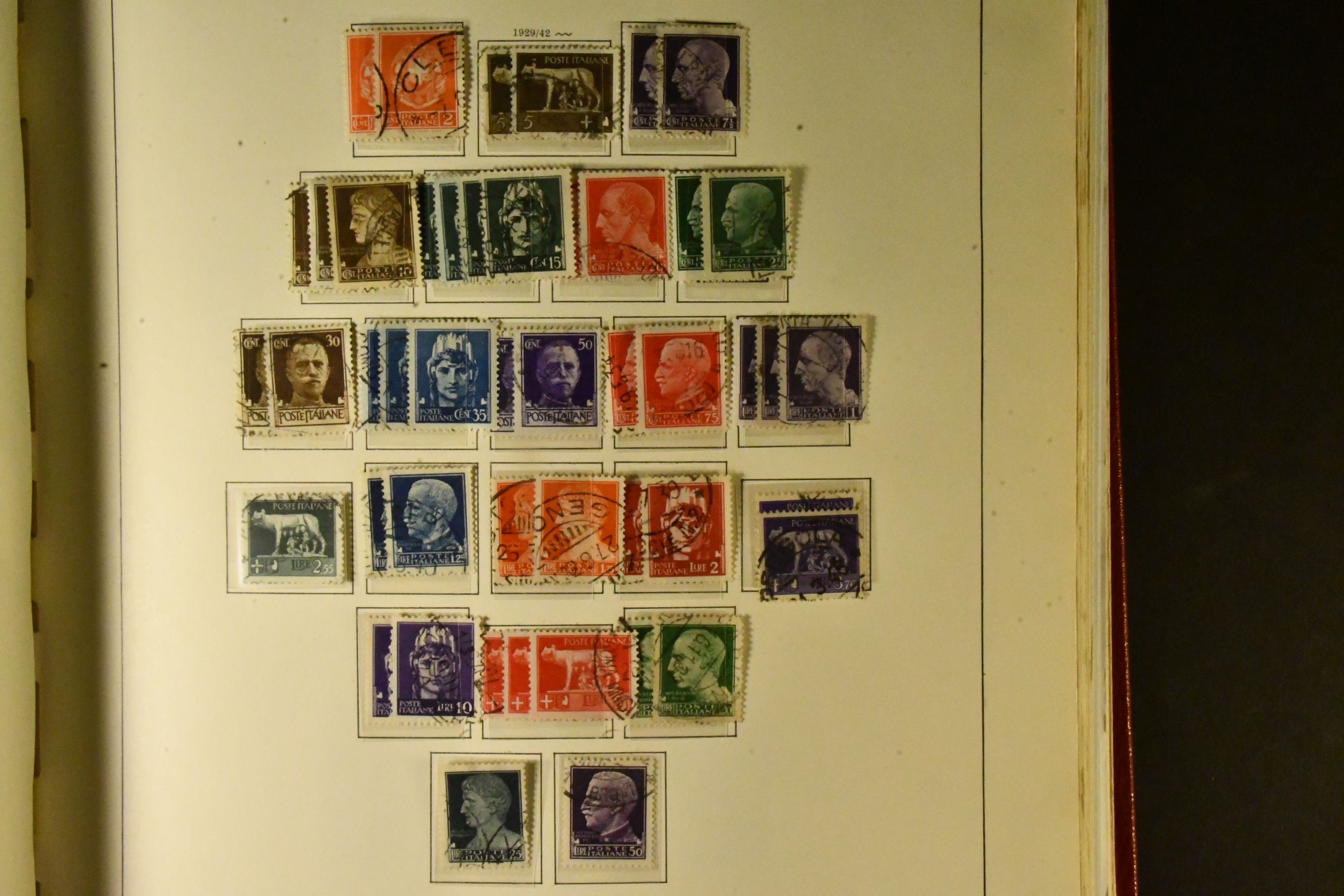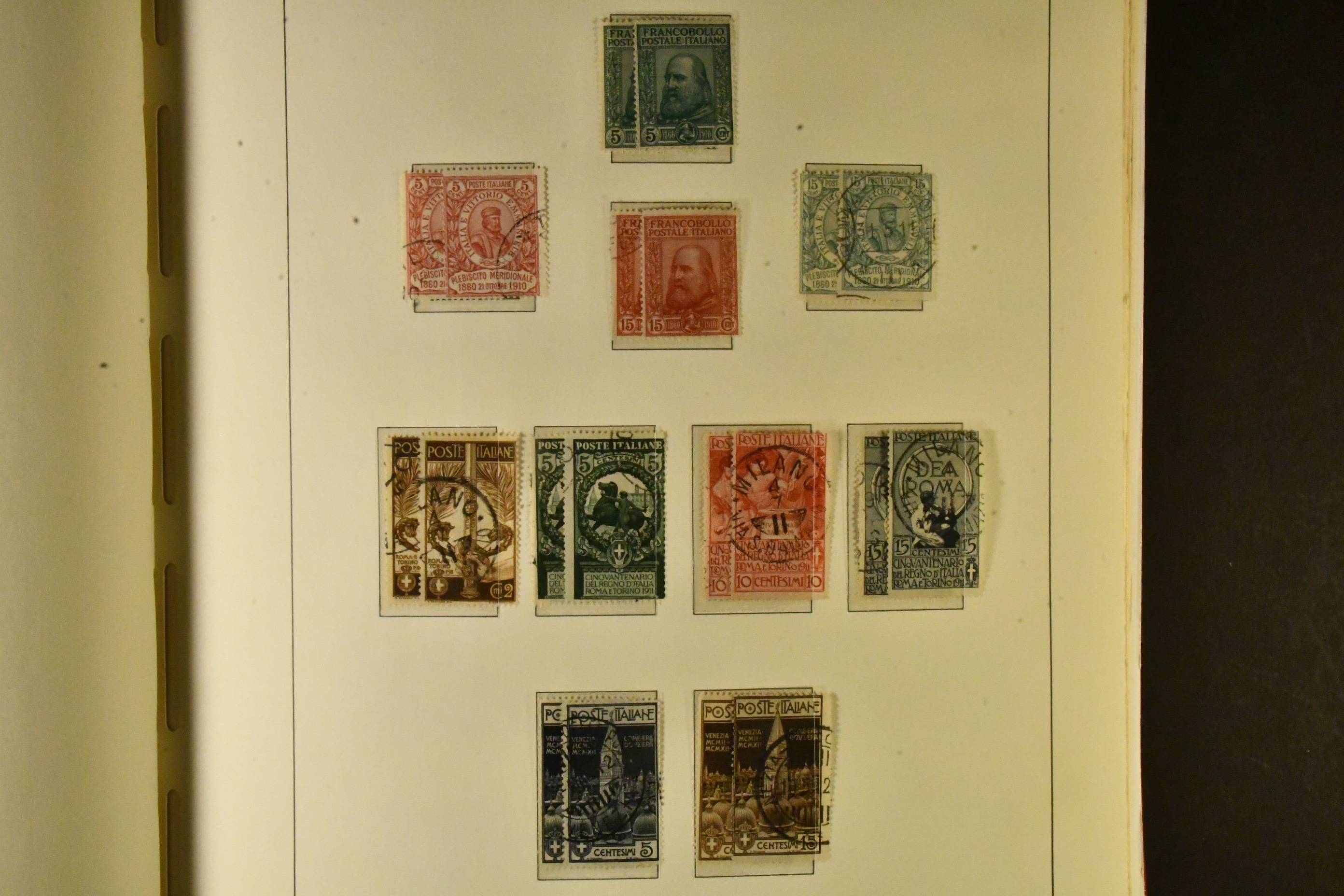 Italy. Collection/accumulation mostly used 1861–1945 in thick album. A wealth of material incl. better classics and many later complete sets incl. most better ones, slight duplication incl. also duplicates of some better stamps, pictures of the entire lot is avaliable on our website. Mostly fine quality.