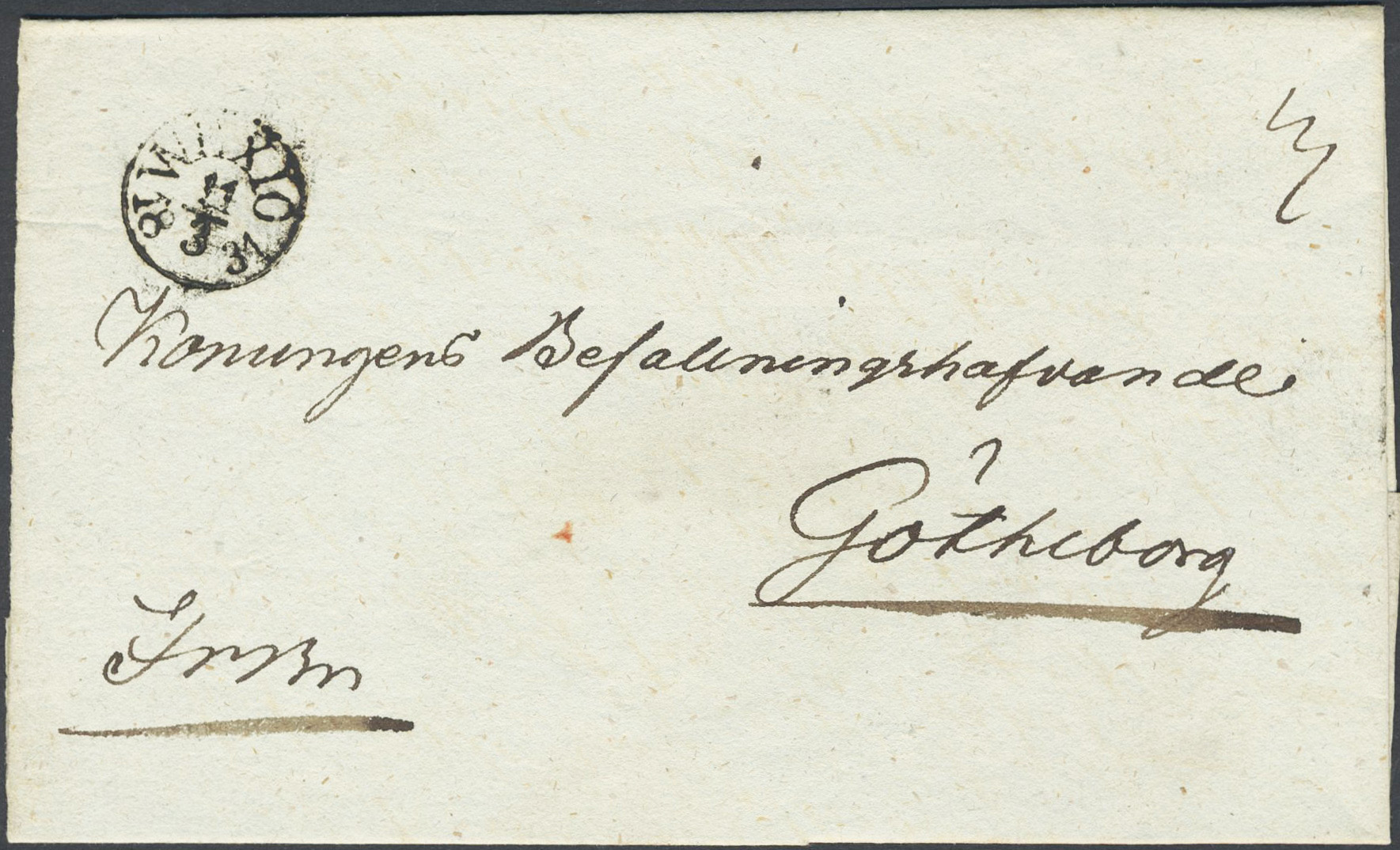 Sweden. Prephilately, collection G/H COUNTIES on visir leaves. Selected better items: Arc pmks WESTERVIK type 3 (P: 1200), WIMMERBY type 2 on banner (?) (P: 600), WEXIO type 1 (P: 800), rectangular pmks WESTERVIK type 2 in two copies sent during the sk bco stamp period and WIMMERBY type 3 (P: 600). The entire lot is presented at www.philea.se. Fine–superb quality. (6)