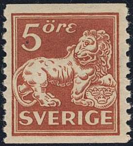 Sweden. Facit 142Acz ★★, 5 öre brown type II vertical perf 9¾ with vm turned lines + KPV. Good centering. SEK 6000