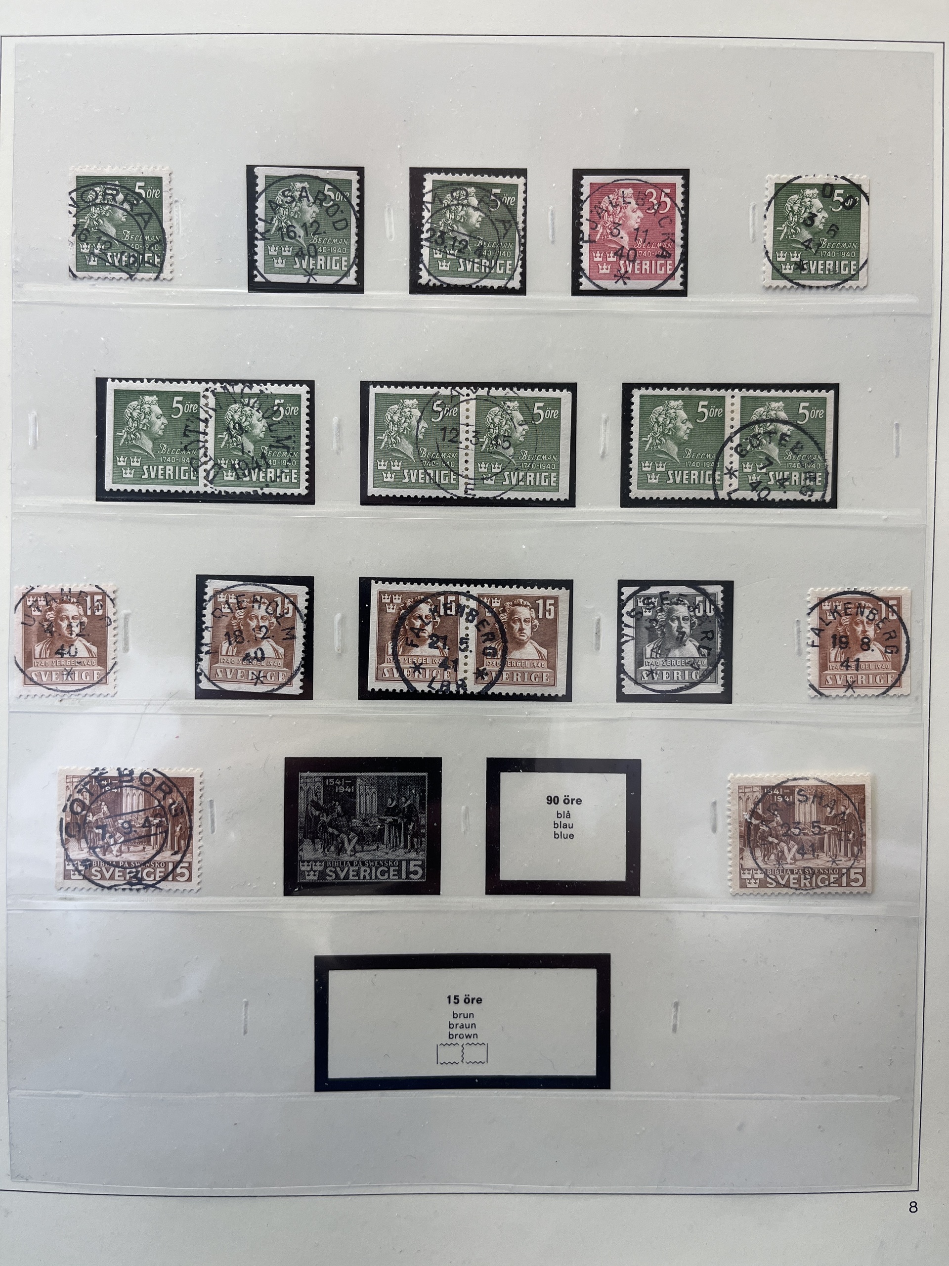 Sweden. Collection used 1855–1969 in two SAFE dual albums mostly with perfect–good canc. Please see many scans at www.philea.se. Mostly Excellent quality. Approx. 5 kg.