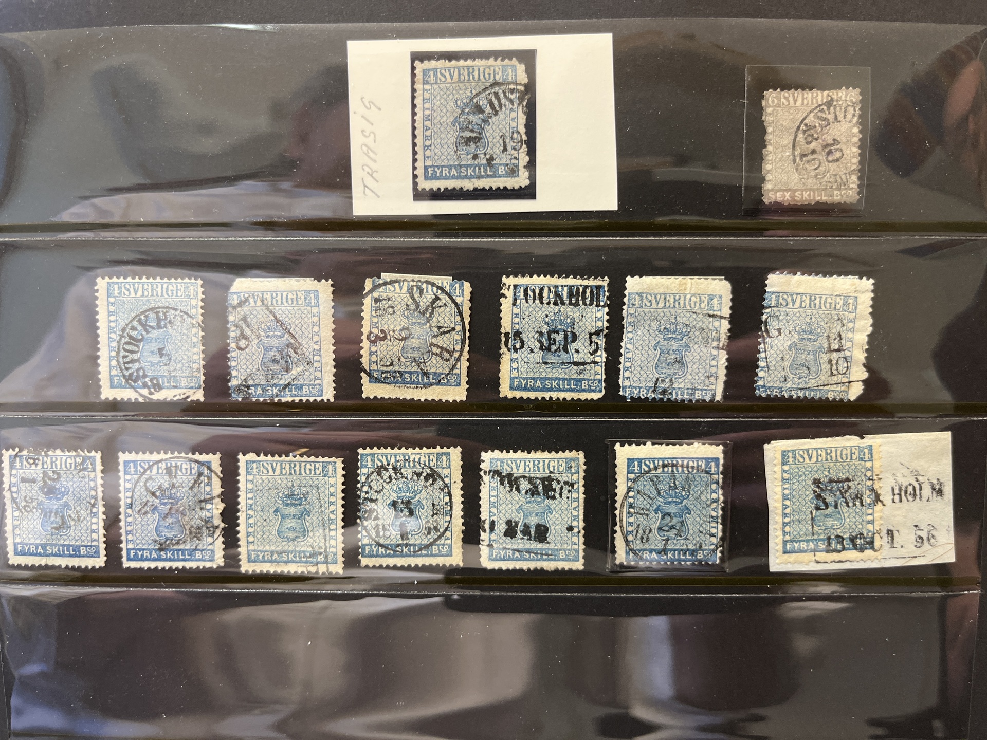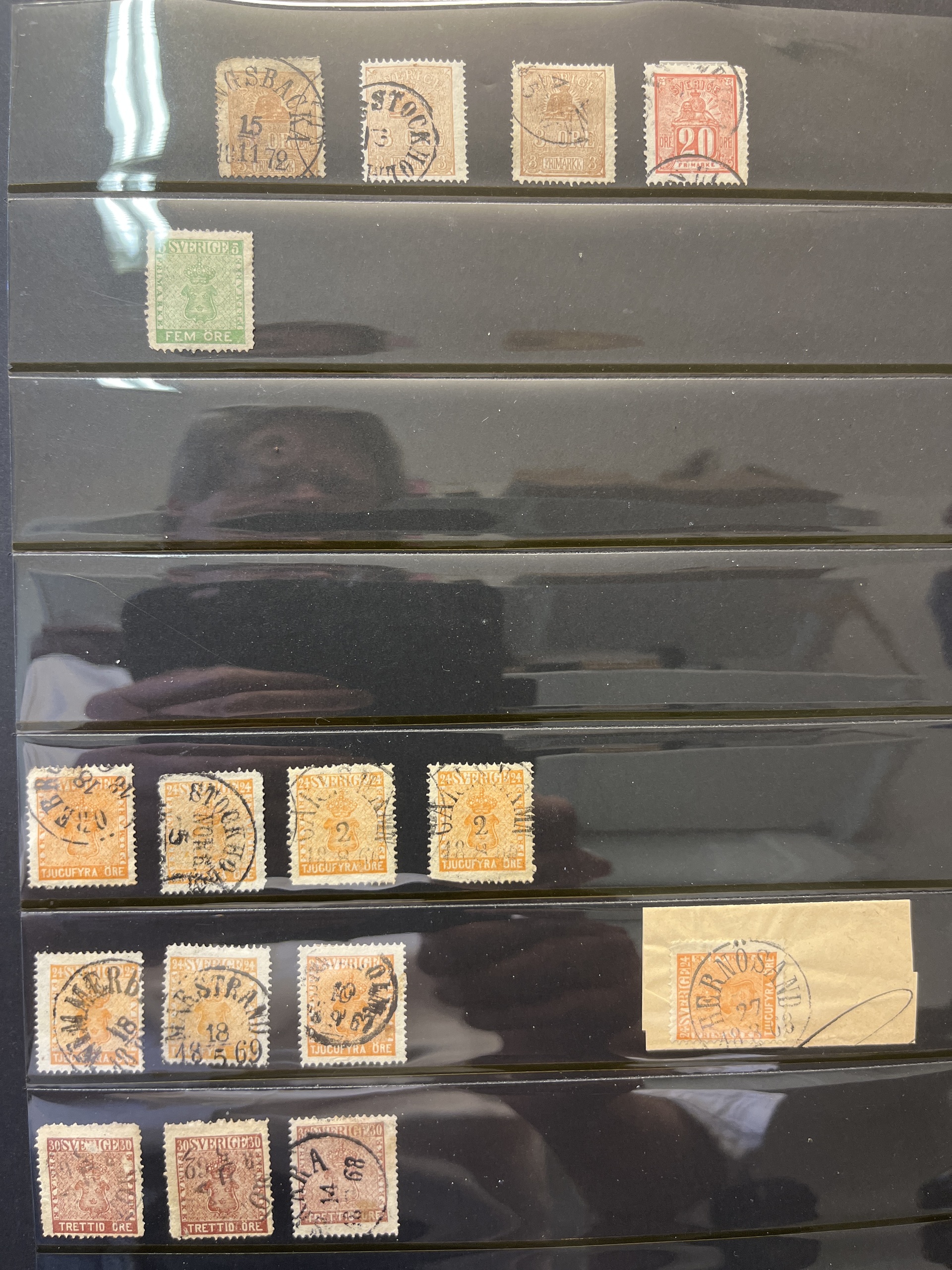 Sweden. Accumulation used 1855–ca. 1960 in visir album (29 leaves) with e.g. many 4 sk bco and Circle type. Very mixed quality.