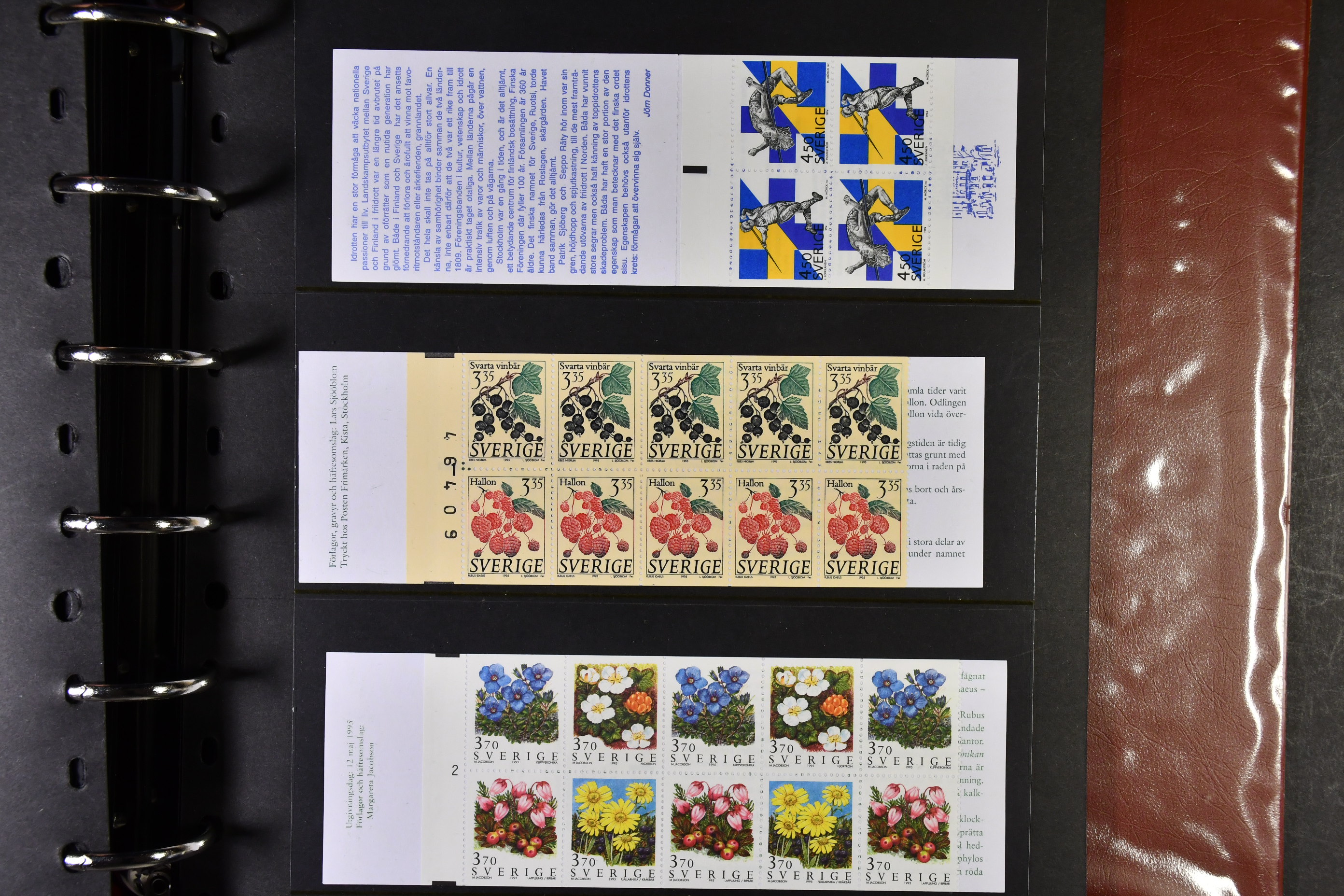 Sweden. Booklets, collection/accumulation 1977–1990 in visir album. 145 booklets from the period (including discount stamp booklets). Spine prints, cylinder digits, control numbers and combinations thereof. Denominations up to 50 SEK. All the material can be used as franking if desired. Please see a selection of scans at www.philea.se. Excellent quality.