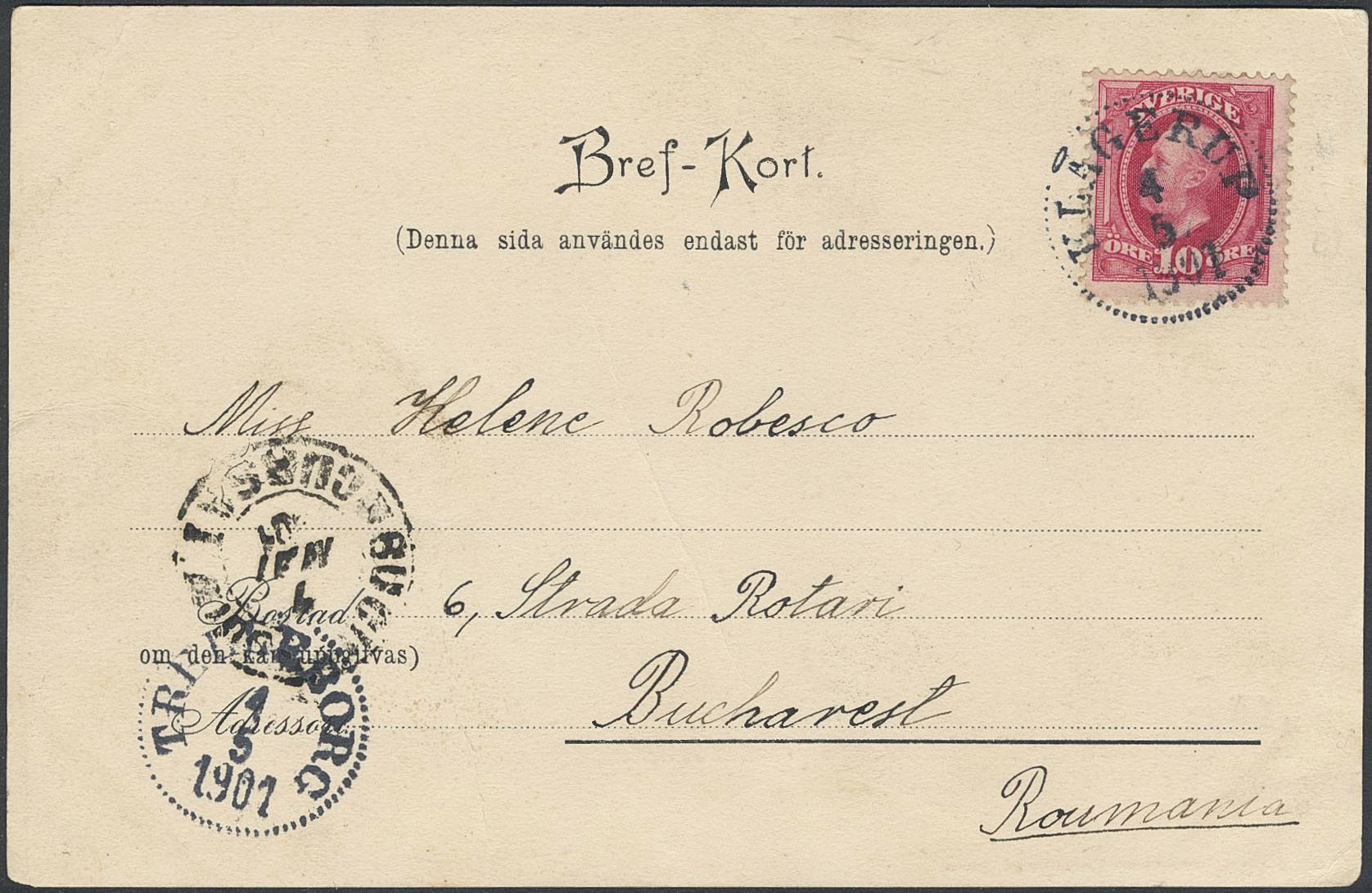 Sweden. Collection covers OSCAR II on visir leaves. Mix of foreign destinations e.g. to Egypt, Japan, Romania and South Africa, registered and insured covers sent abroad, a money order sent to Denmark, an address card for insured parcel with mixed franking, etc. The entire lot is presented at www.philea.se. Somewhat mixed quality. (10)