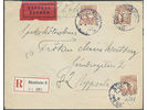 Sweden. Collection covers REGISTERED MAIL 1898–1937 on visir leaves. Interesting mix of mixed frankings and other nice combinations, incl. usages with cash on delivery, special delivery and censor. The entire lot is presented at www.philea.se. Somewhat mixed quality. (14)