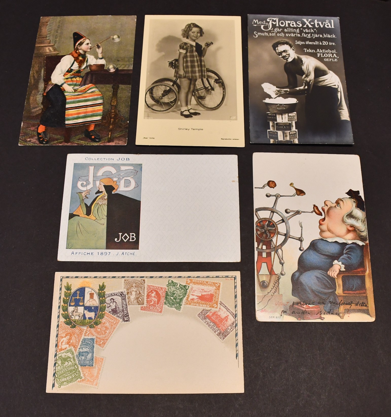 Sweden. Picture postcards. THEMATICS as regional costumes, actors and other famous people, real photo cards of people and places, advertising, military, animals and much more, both Swedish and foreign, all in the old size, interesting mixture (900).