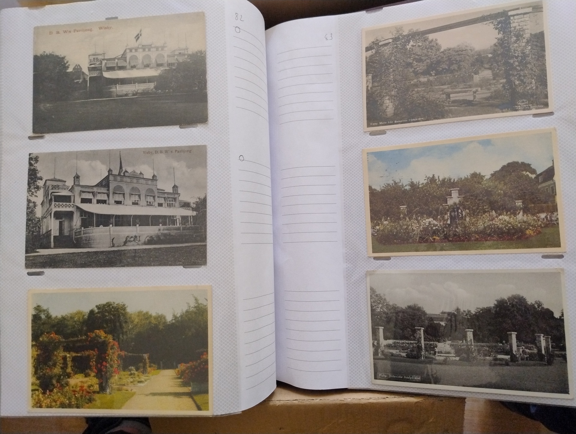 Sweden. Picture postcards, collection ca. 1900–1950s in box. Gotland large coll. in four albums, old–new with different motives. Mostly fine quality. Approx. 8 kg. (900)
