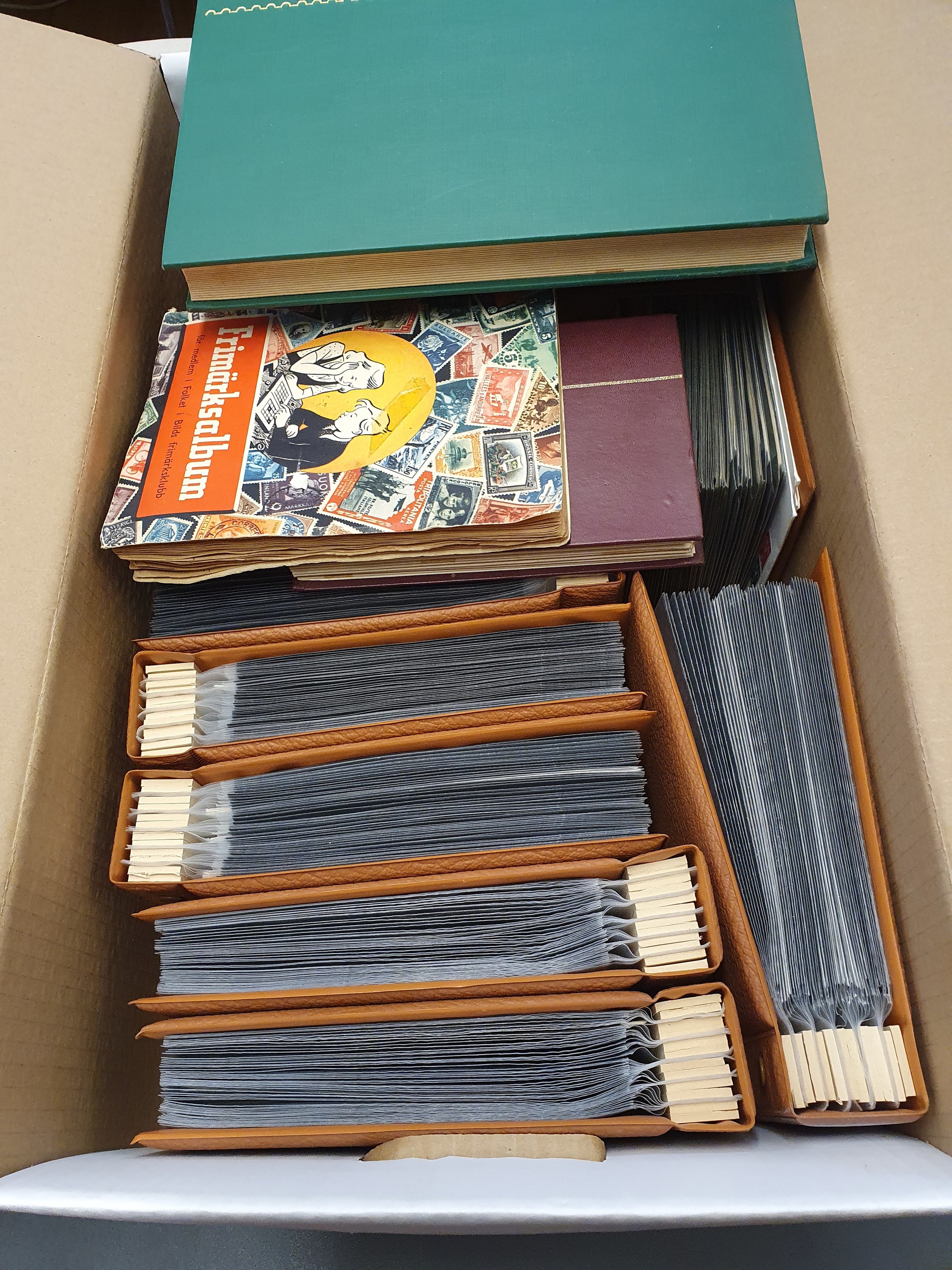 ALL WORLD. Collection/accumulation used 1800s–2000s in box. Here are more than 88 kg of stamps, different sorts of albums and much more. A real bargain is waiting! Please see a selection of scans at www.philea.se. Good quality. Approx. 88 kg.