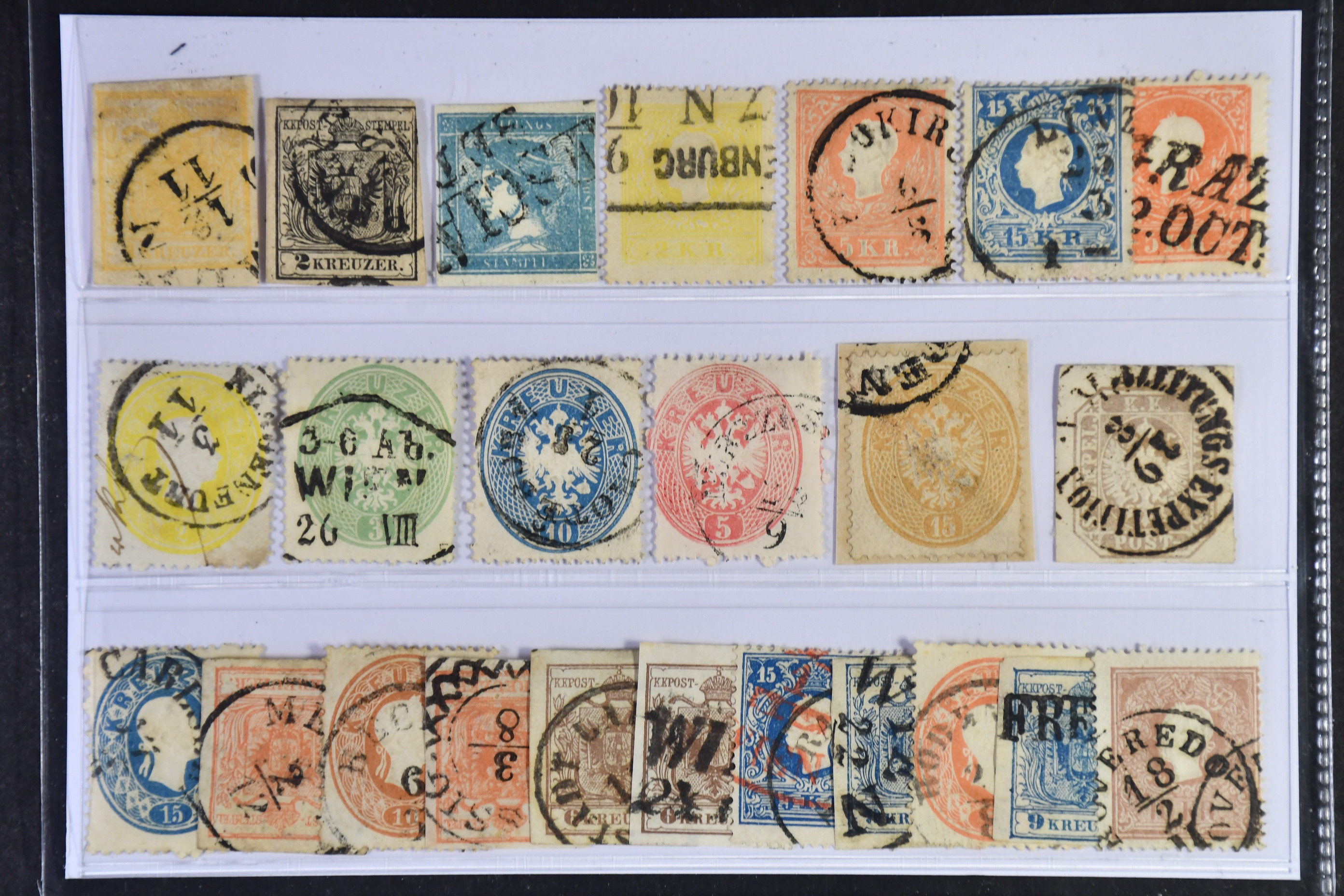 Austria. Used 1850–1863. All different, e.g. Mi 1y, 2y, 6, 10 II, 13 I, 15 I, 18, 25–29. Mostly good quality. Mi € 755 (24)