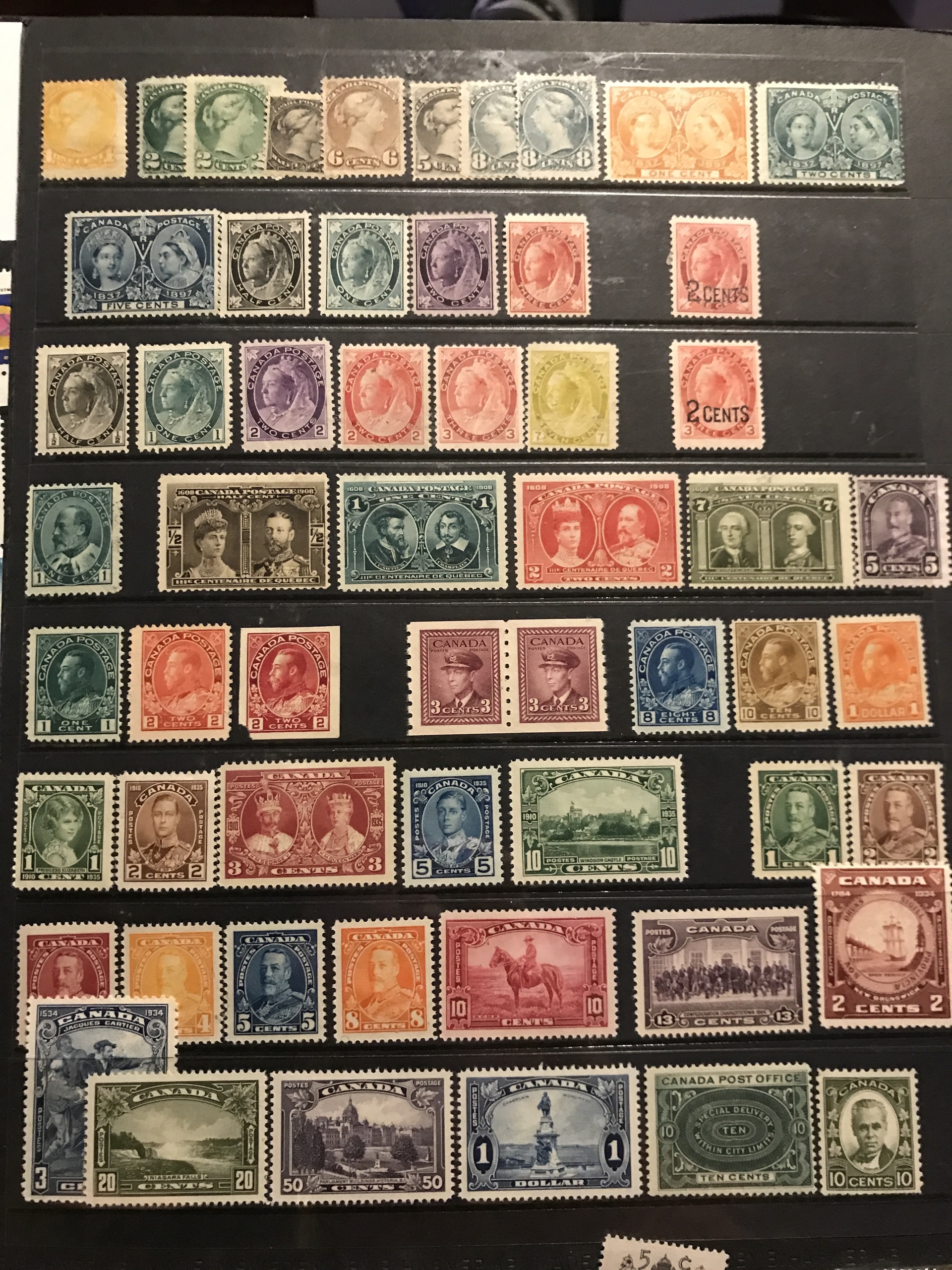 Canada. ★★/★. Selection 1870–ca. 1970 on Visir leaves incl. many medium early stamps and some blocks-of-four, etc, Please see a selection of scans at www.philea.se. (170)