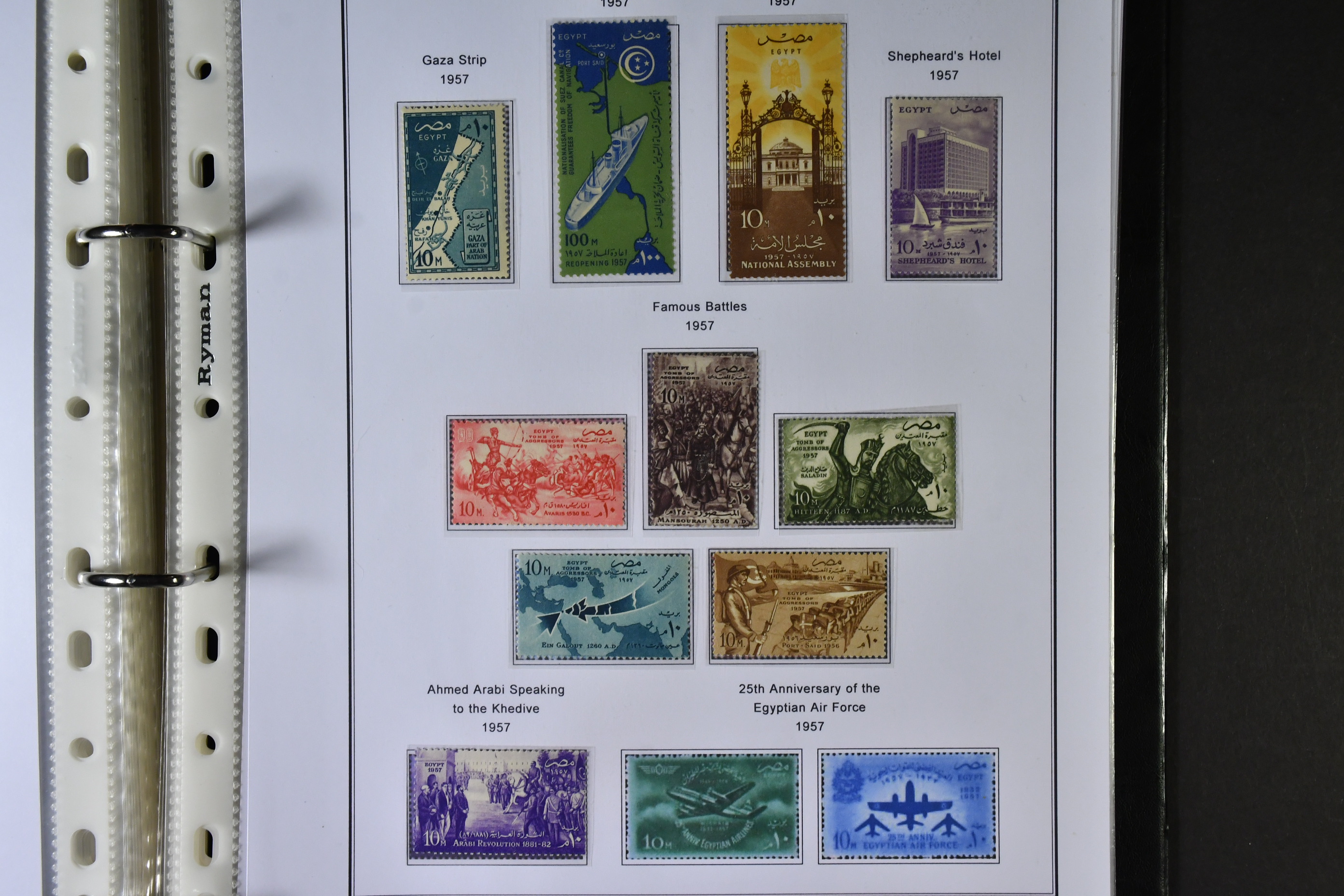 Egypt. ★★/★/⊙. Attractive mint collection housed in two albums from the 1866 overprint issues onwards, including important mint as well as back of the book, such as the 1935 Jubilee commem stamp red o/p on the 1pi blue 1 (a shortish perf), through to independent Egypt from 1923/24 onwards and various other better commem sets from 1930s/40s + airmails 1933 Zepps. There is much more with most pages well filled to the modern era, including highlights such as the perf and imperf miniature sheers of the Cairo 80th anniversary 1946, etc, 1947 airmails and next year o/ps inc S.A.I.D.E. 1948, culminating in the 19th century Suez complete set of 4. All the above is housed in two special albums specifically for these countries. A lovely well rounded mint collection, much recommended and an enjoyable viewing.
