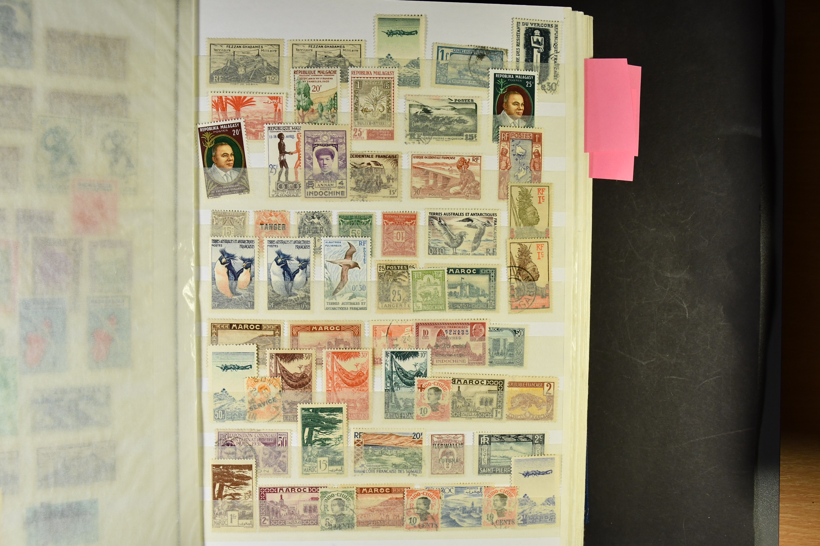 French colonies. Collection/accumulation ★★/★/⊙ 1900–1960 in large stockbook. A disorganized but comprehensive material covering colonies (territories) all over the world. Some stamps in duplicate or more. Nevertheless an interesting material. Please see a selection of scans at www.philea.se. Good quality. (>1500)