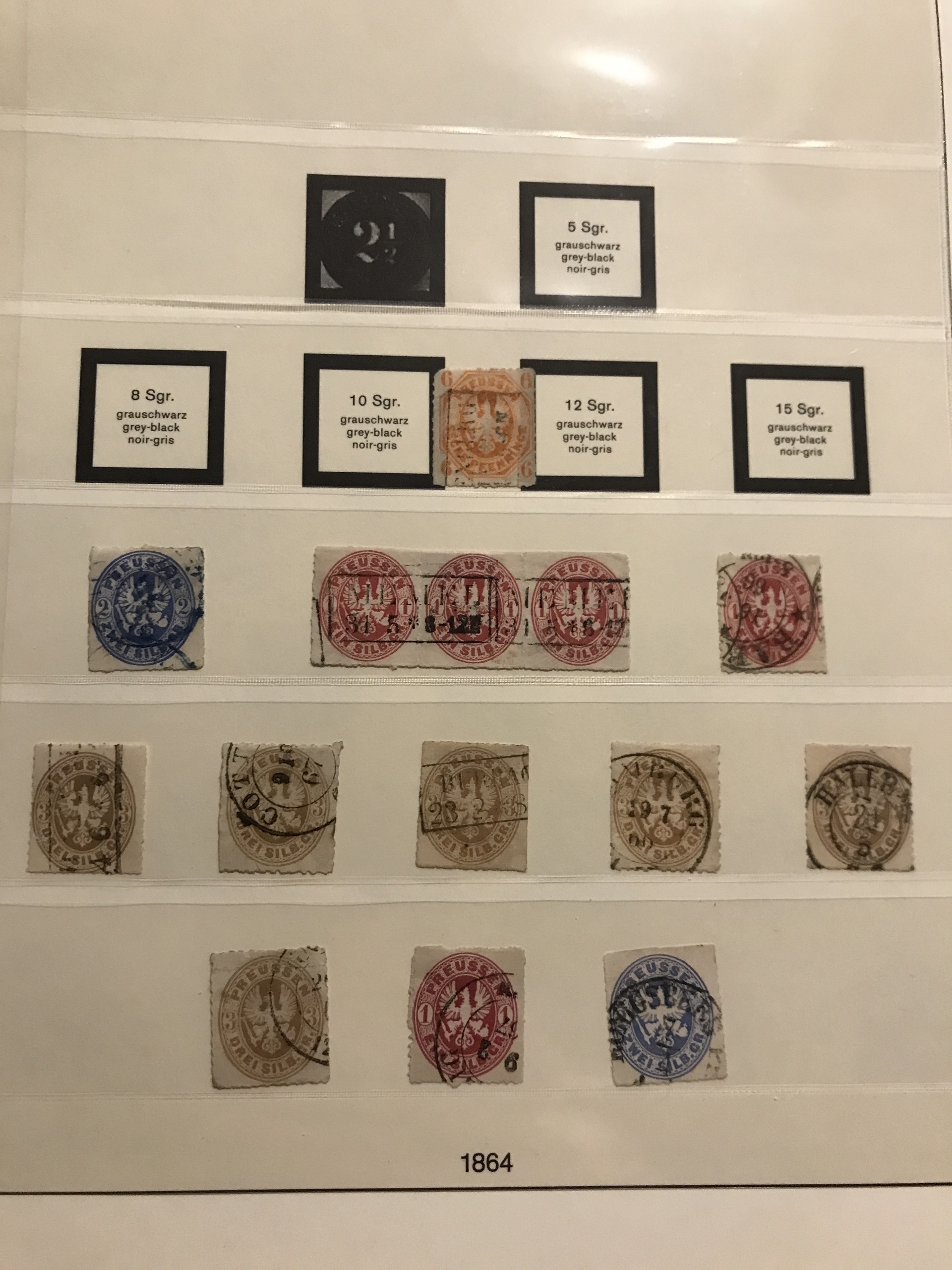 Germany, Prussia. Mostly used. Collection 1850–1867 on leaves incl. duplicates. Complete in main numbers except Mi21, incl. some shades, pairs and cancellations. The entire lot is presented at www.philea.se. Mostly fine quality. (175)