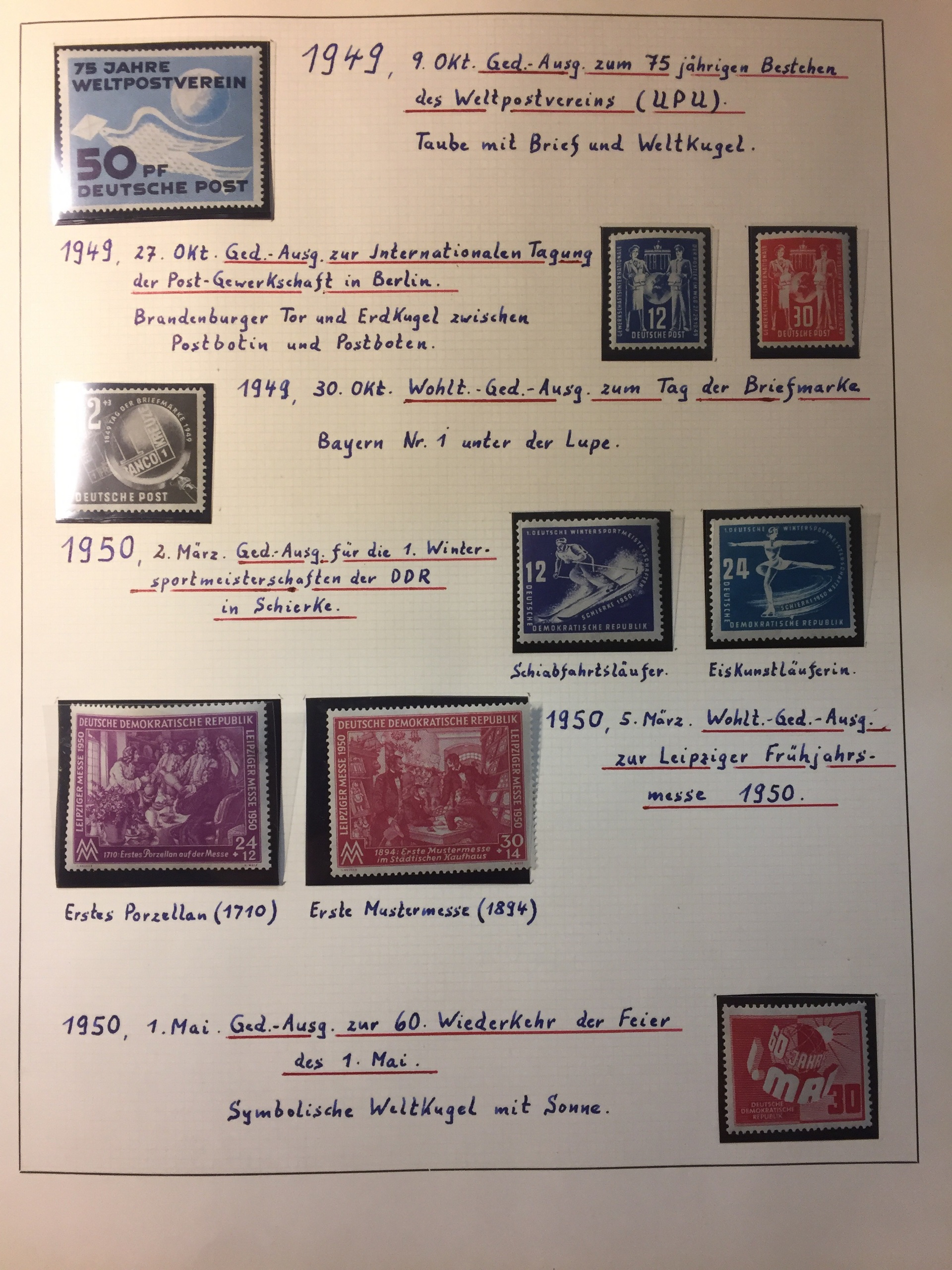 Germany, GDR (DDR). Collection ★★ 1946-63 in album. Complete in fine quality, only lacking the imperf s/s Mi 8-9B. Also Soviet Zone with a few s/s.
