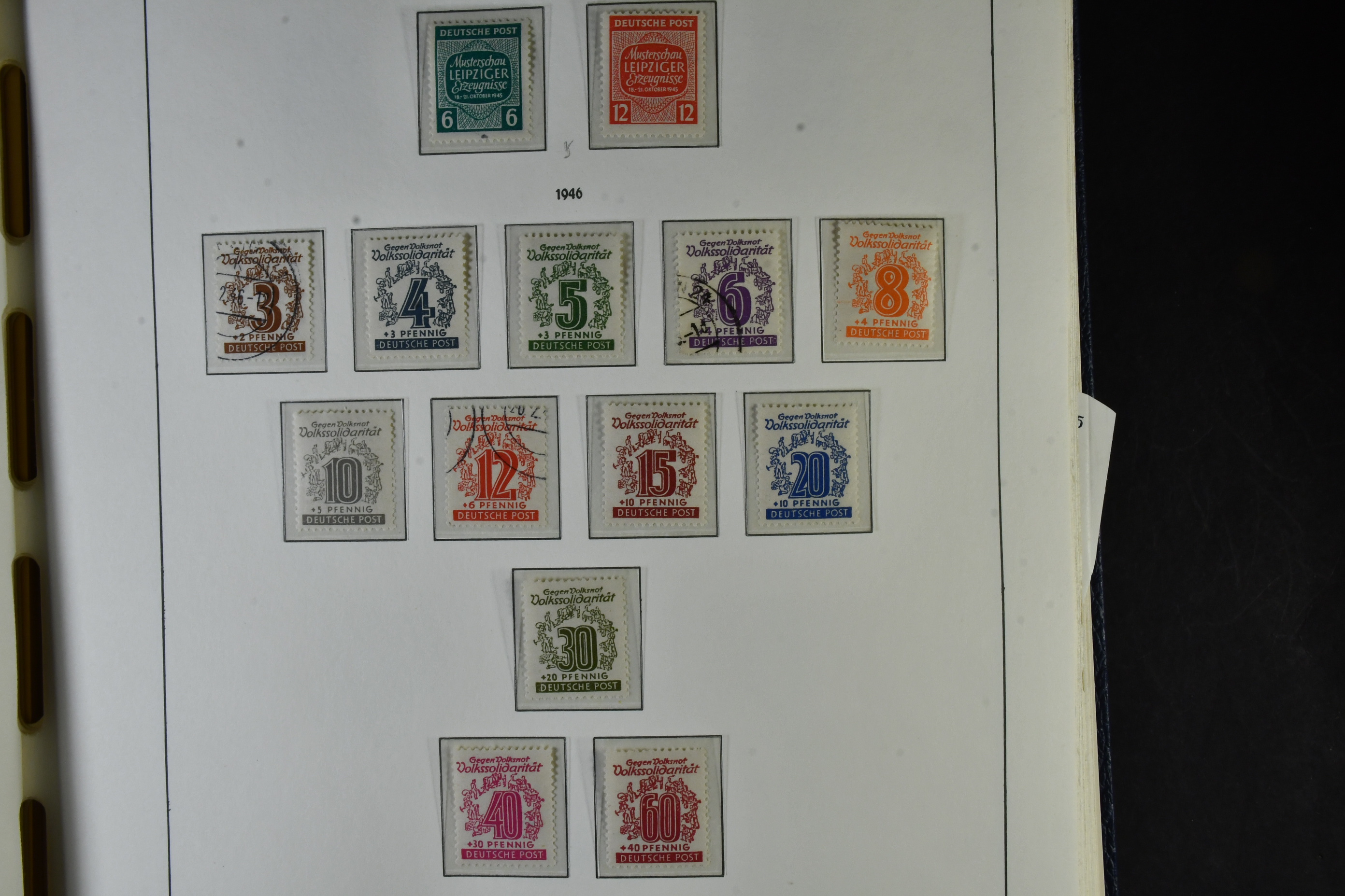 Germany, GDR (DDR). Collection ★★/★/⊙ 1945–62 in Leuchtturm album with stamp mounts. Starting with Soviet Zone with better incl Berlin and Mecklemburg, Eastern Saxony incl perf varieties, Goethe s/s used etc. DDR more or less cpl in main numbers mainly used but later parts unused, e.g. Debria s/s xx+used, Marx sheets cpl imperf and perf etc. Fine quality.