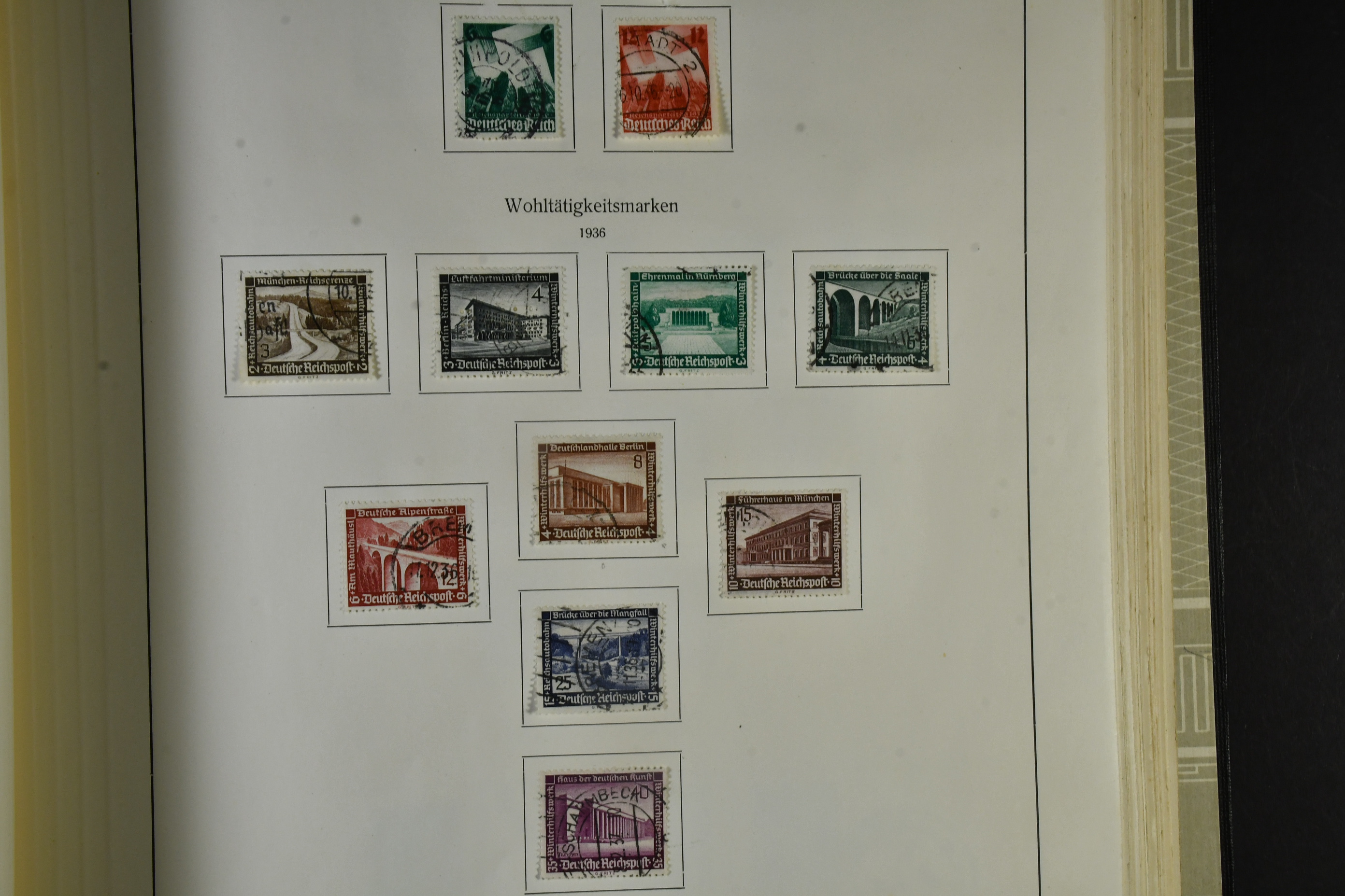 Germany, mixed. Mostly used. Lovely large old heavy KABE album (1935) grandfathers' collection, primarily used to the 1920s with several 100s stamps beginning with Bavaria with various imperfs and shield issues, perfins and a very good representation of WW1 on to Wurttemburg, as well as earlier ranges Baden, Brunswick to NGC, Prussia, Saxony particularly an interesting Leipzig straightline cancel on 1863 high value 3ngr, etc, through to German Empire from 1872 onwards, 1880/89/1900 to Reichspost well filled on to peace time printings and then 1905 again well represented, through to the war time printings, the high values on transitional Bavaria Deutsches Reich o/ps complete, inflation issues commercially used, commercially used, etc. Further Weimar republic 1925/28 again well filled on to Third Reich with many good sets present inc the professions of 1934, costumes, parallel mint and used, etc. Also seen ranges of Danzig, Saar, Memel, Upper Silesia ending with occupation issues/Allenstein, some German Colonies, etc. Completely uncatalogued, unpicked and most worthwhile.
