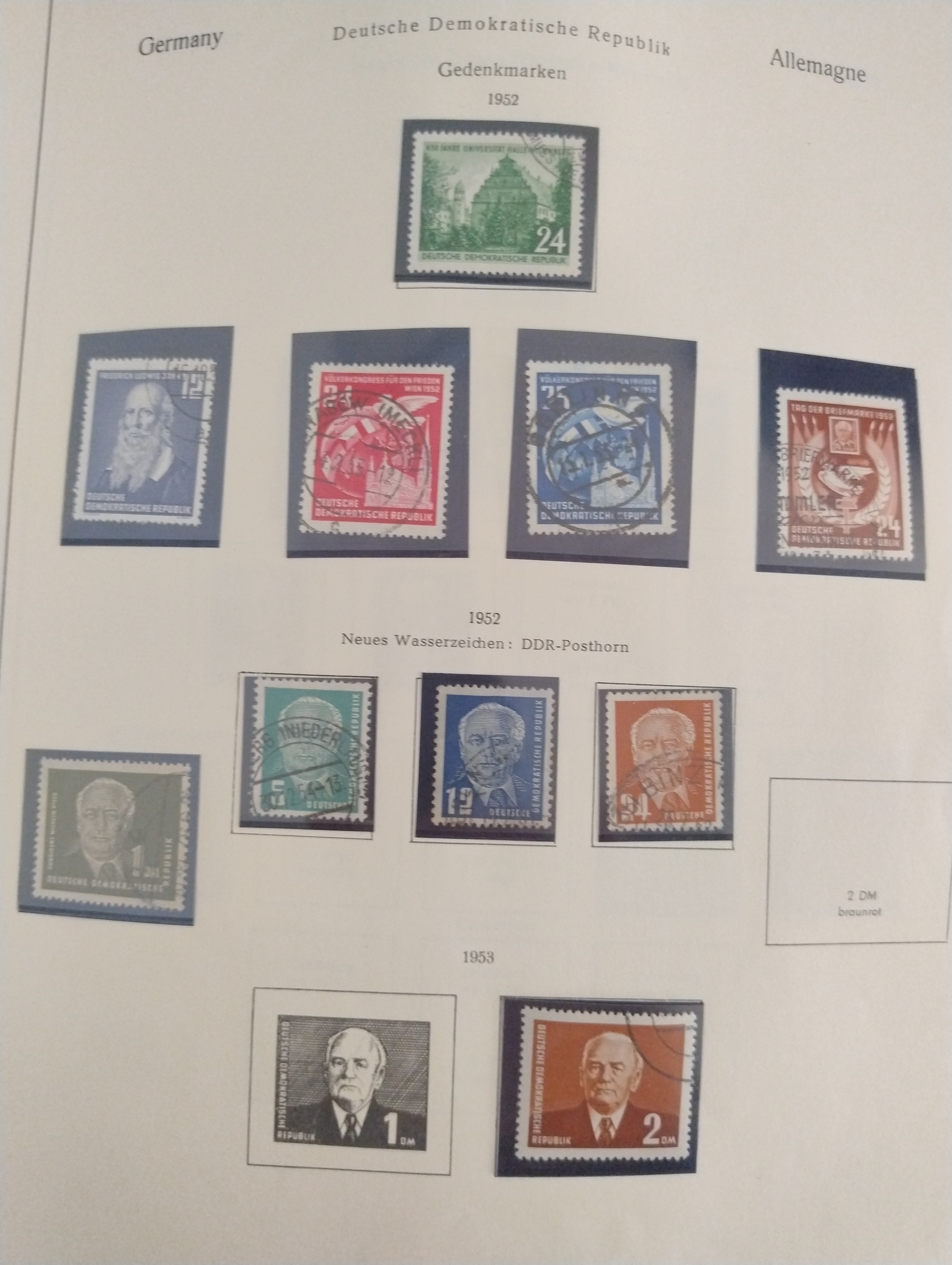 Germany, mixed. Collection/accumulation ★★/★/⊙ 1849–1969 in box. Two thick Ka-Be albums with a collection 1872–1969 incl. GFR, GDR and Berlin, one old Shaubek album 1849–1945 incl. some states and one stockbook with accumulation French Zones. Please see a selection of scans at www.philea.se. Good quality. Approx. 8 kg. (1000s)