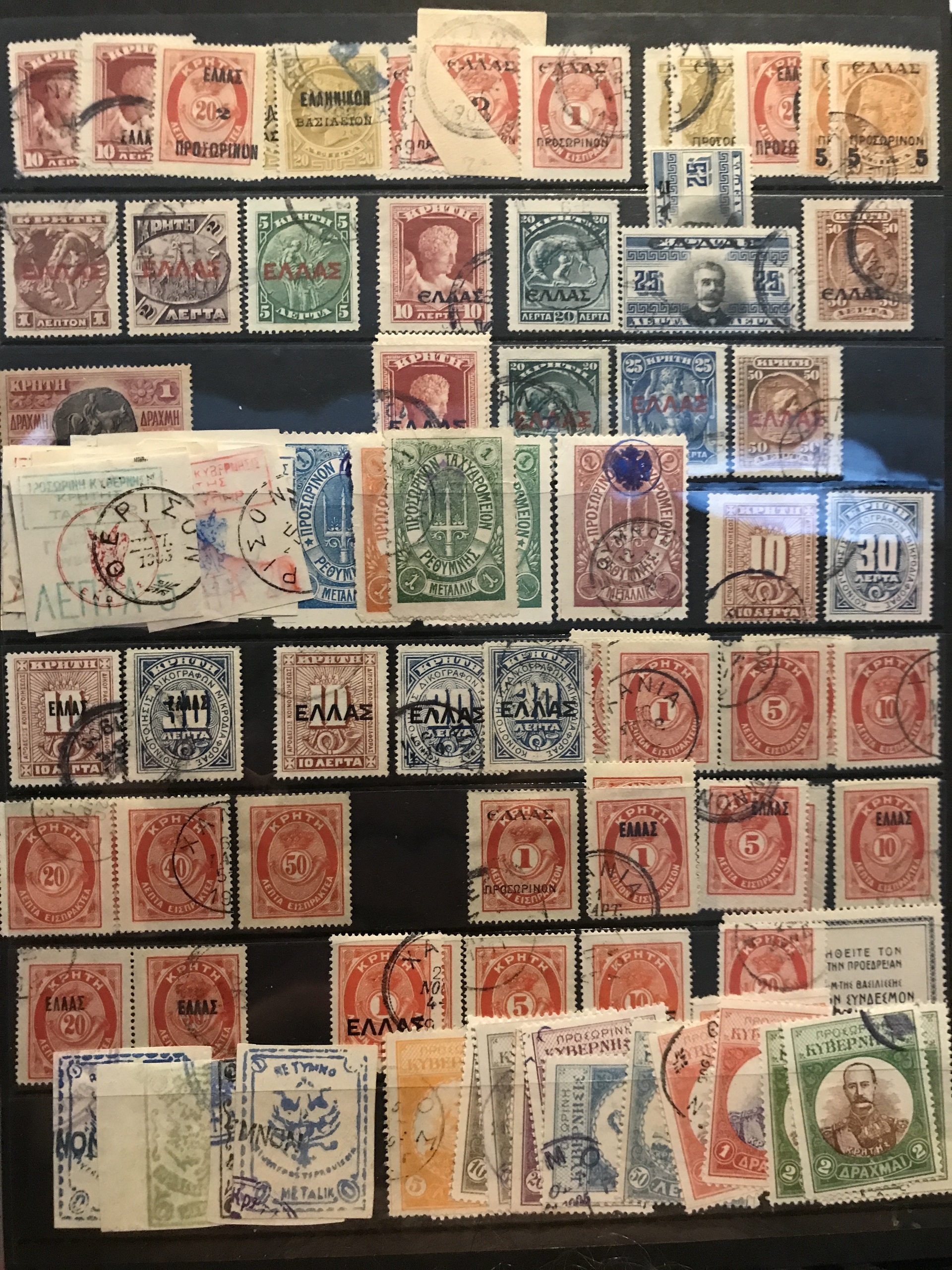 Greece. ★★/★/⊙. Lot mostly ca 1900-1915 on leaves. Mostly Creete but also Epirus, Moscopole, Samos, Thrazia and Dodekanes etc. Please see a selection of scans at www.philea.se. (600)