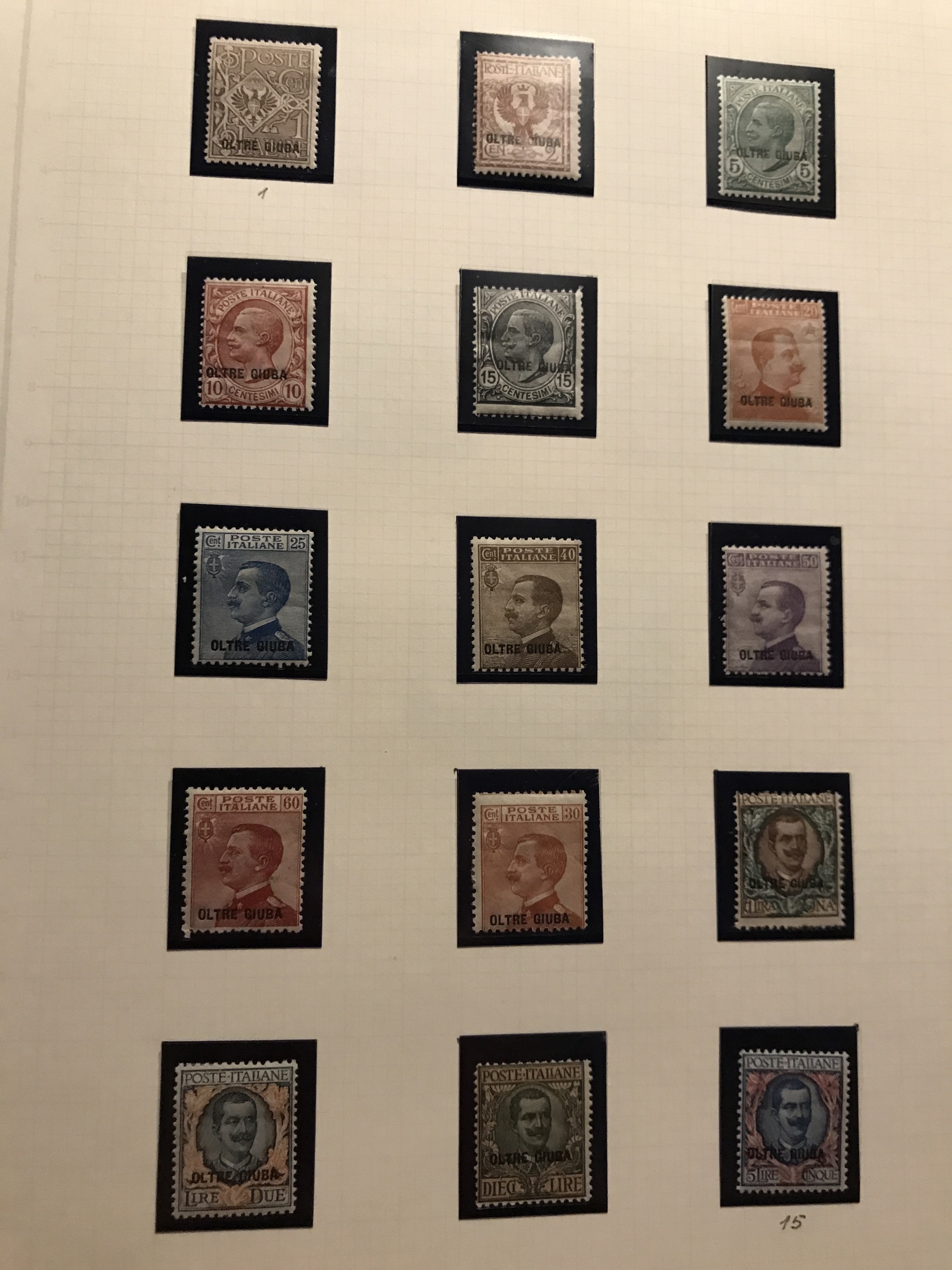 Italy. ★★/★. Selection mostly 1913–1929 on leaves incl. some better sets and also e.g. Eritrea, Castel Rosso, Trentino, Jubaland and some Trentino etc. Please see a selection of scans at www.philea.se. (132)
