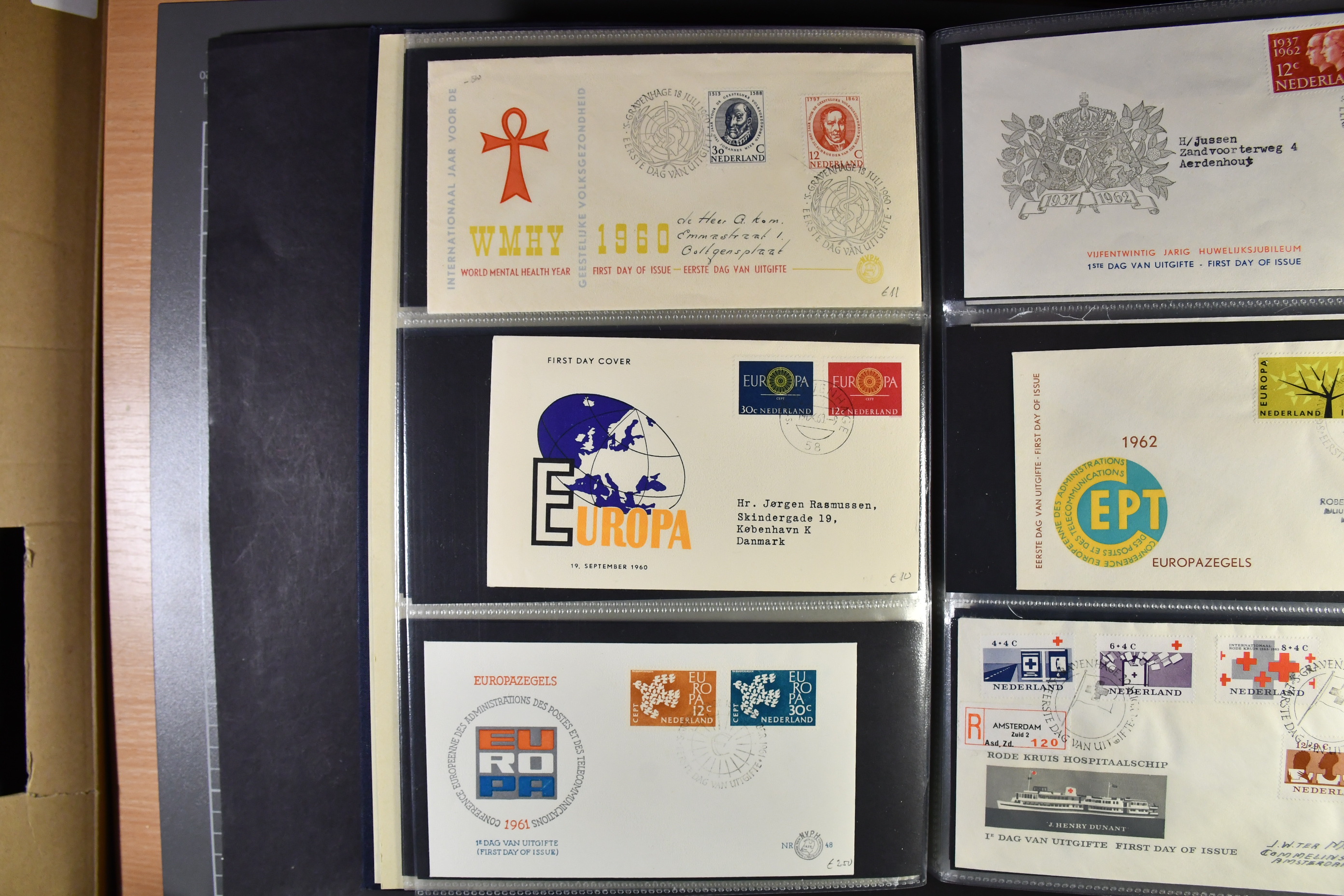 Netherlands. FDCs, accumulation 1960–2000 in album. Approximately 240 FDCs from the period, all with vignettes. Excellent quality.