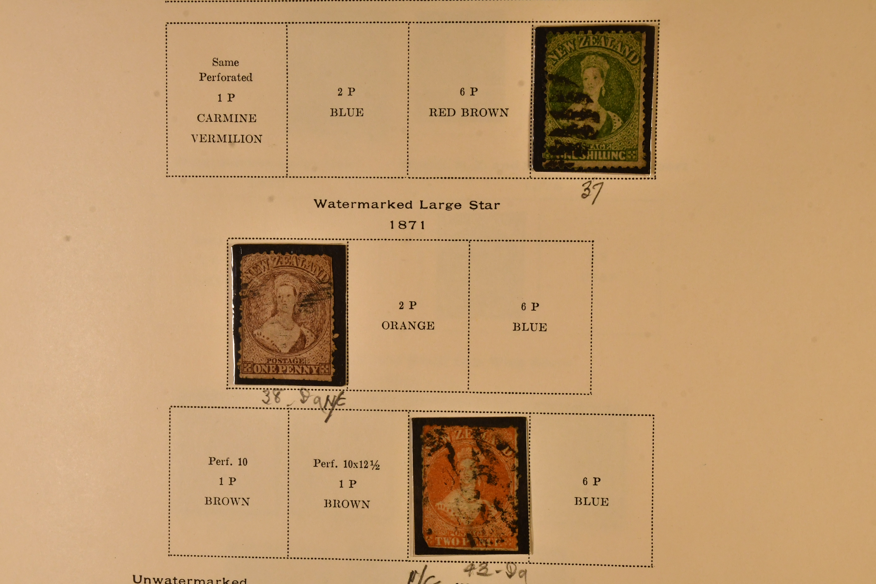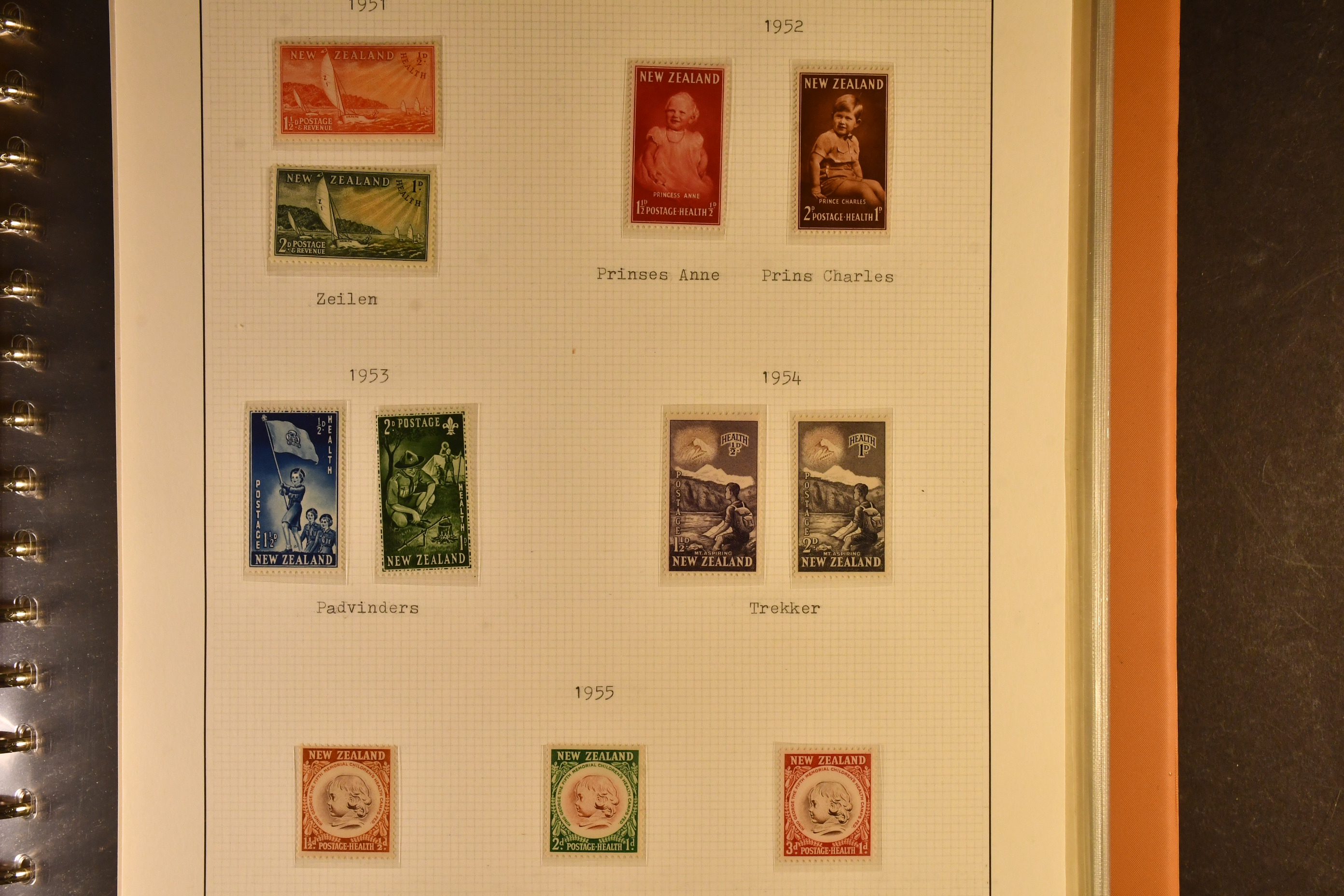 New Zealand. ★★/★/⊙. Collection 1855–1995 in two Lindner- and two Scott albums incl. better early issues, souvenir sheets, back-of-the-book, incl. some Ross, etc. Also two stockbooks with e.g. much ** until 1997. Approx. 15 kg.