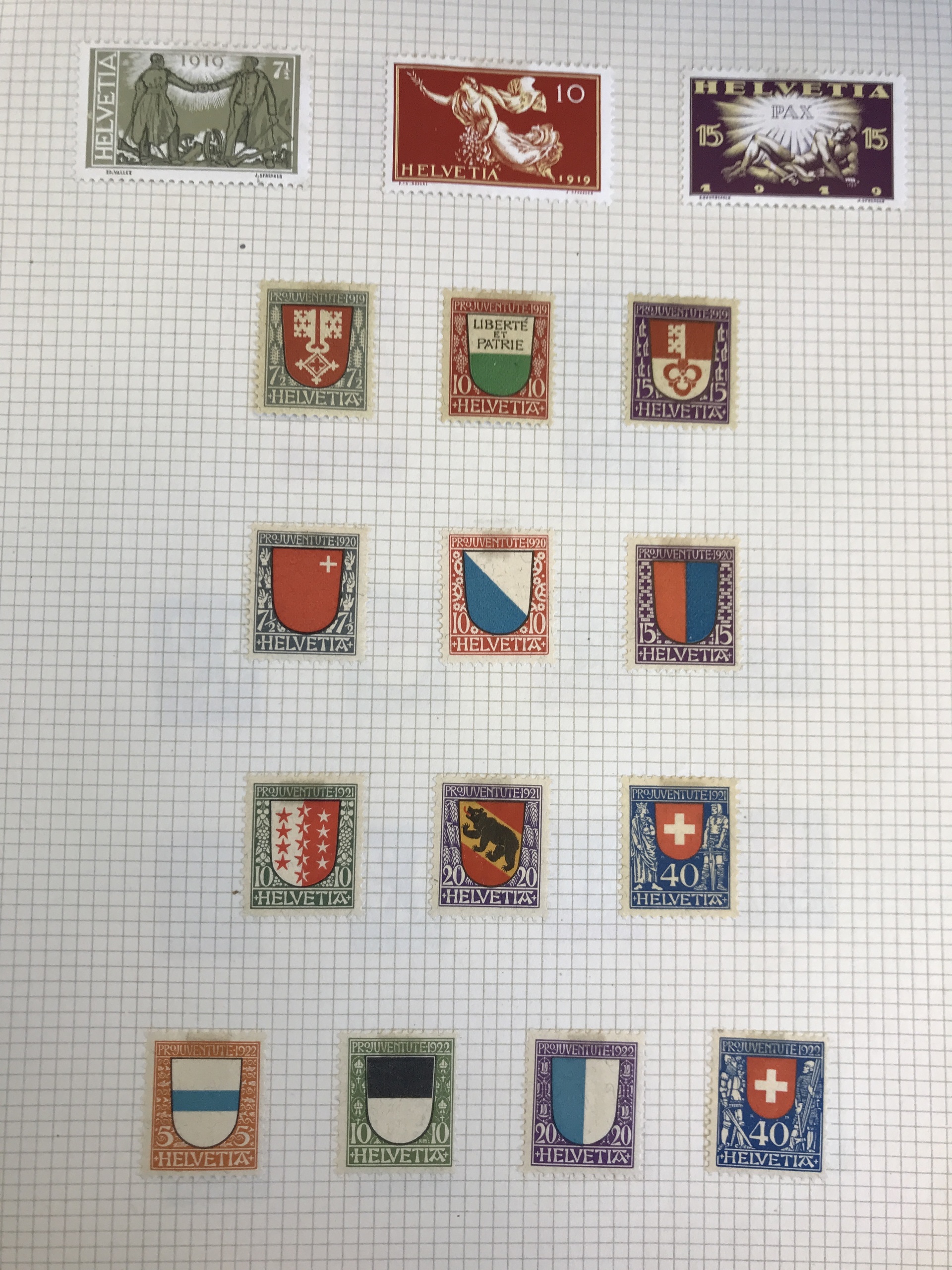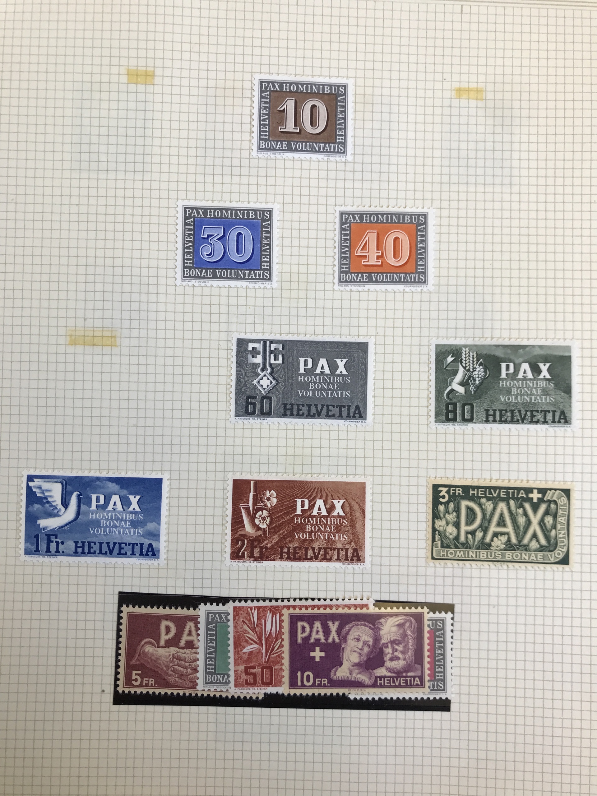Switzerland. Mostly ★. Collection 1913–1948 on leaves incl. nice Juventute sets and PAX cpl., souvenir sheets 6–10, some used incl. Mi130–32, etc. Please see a selection of scans at www.philea.se. (260)
