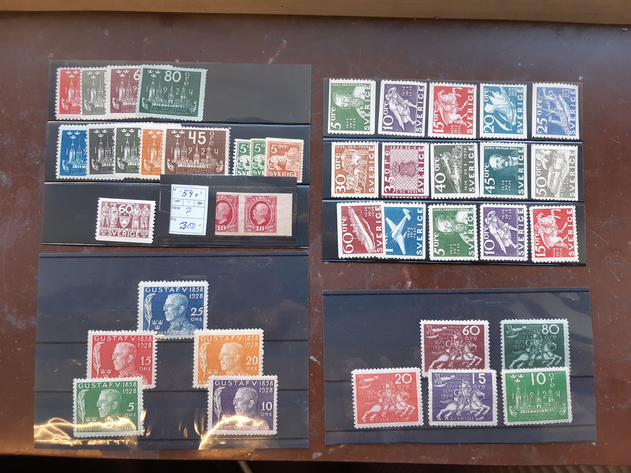 Sweden. Lot ★★/★ 1920s–1930s on stock cards. E.g. various UPU/Congress and cpl. Tercentenary of the Post Office. Also one imperforated F54. The entire lot is presented at www.philea.se. Mostly good quality. (40)