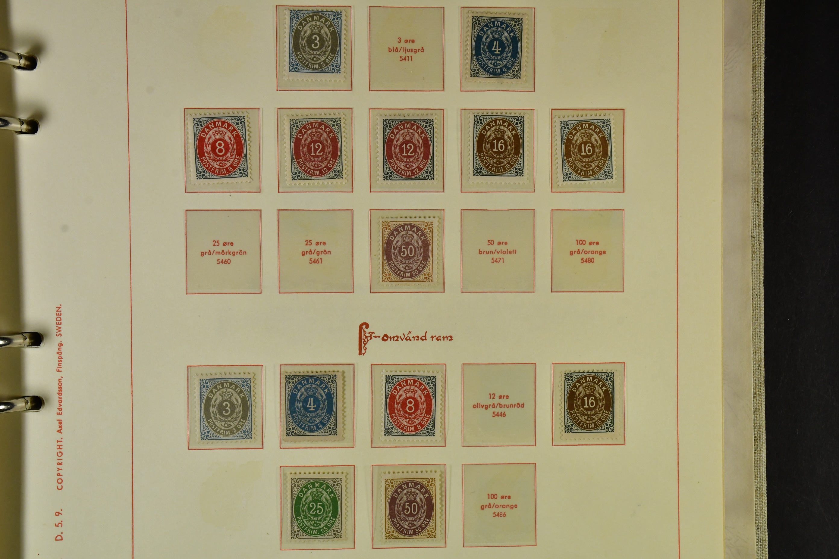 Denmark. Collection ★★/★ 1855–1964 in Estett album. Excellent collection with many rare stamps up to 1900 mint ligthly hinged, afte 1900 some ** and from the 1920s mostly ** (except the 10 kr Chr X) carefull inspection is recommended. Fine quality. (500)