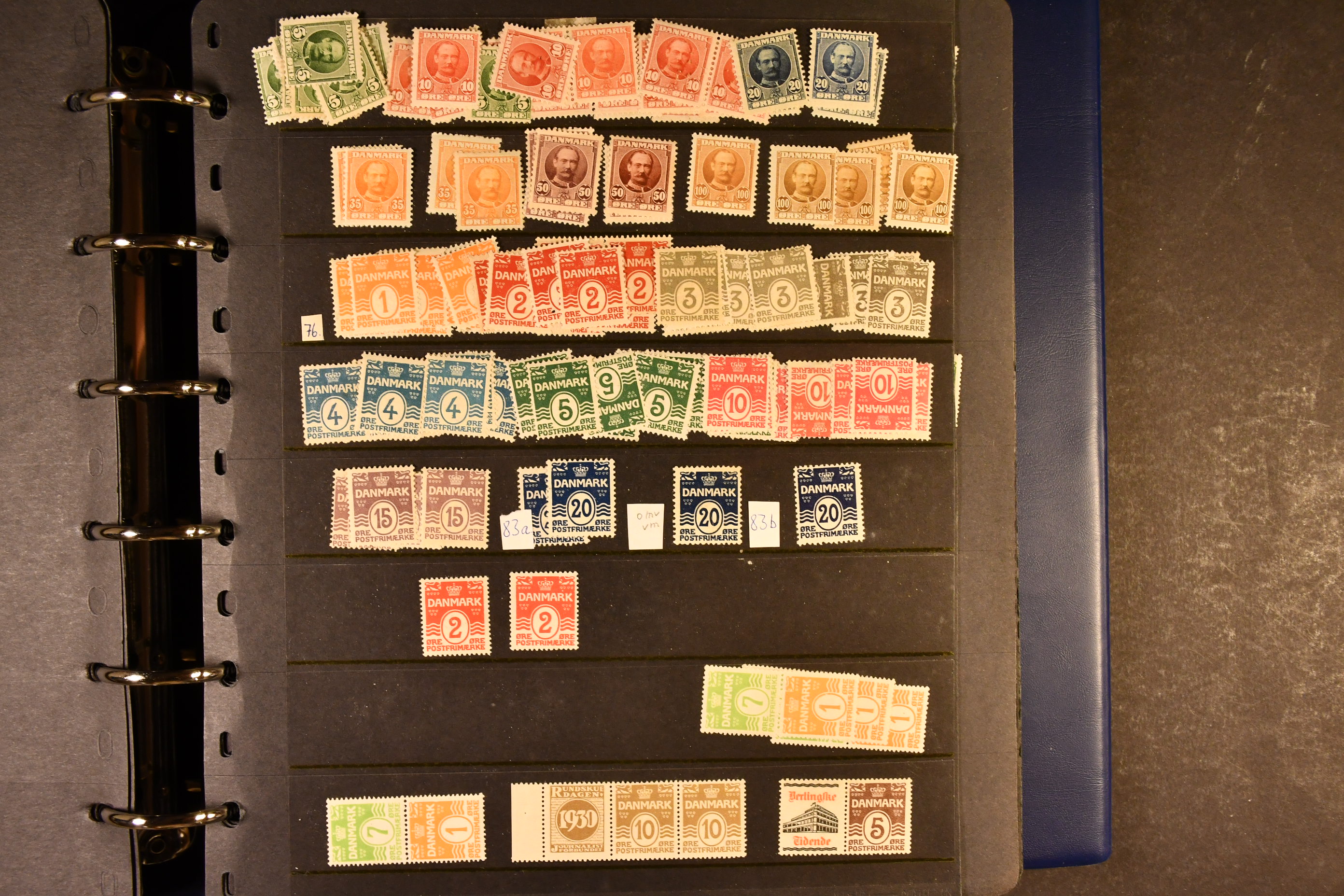 Denmark. Accumulation ★★/★ classic–1950s in album. Partly heavy duplication, several better. Good back of the book section, e.g. Pf 9 in seven ** copies. Please see a selection of scans at www.philea.se. Mostly fine quality. (2–3000)
