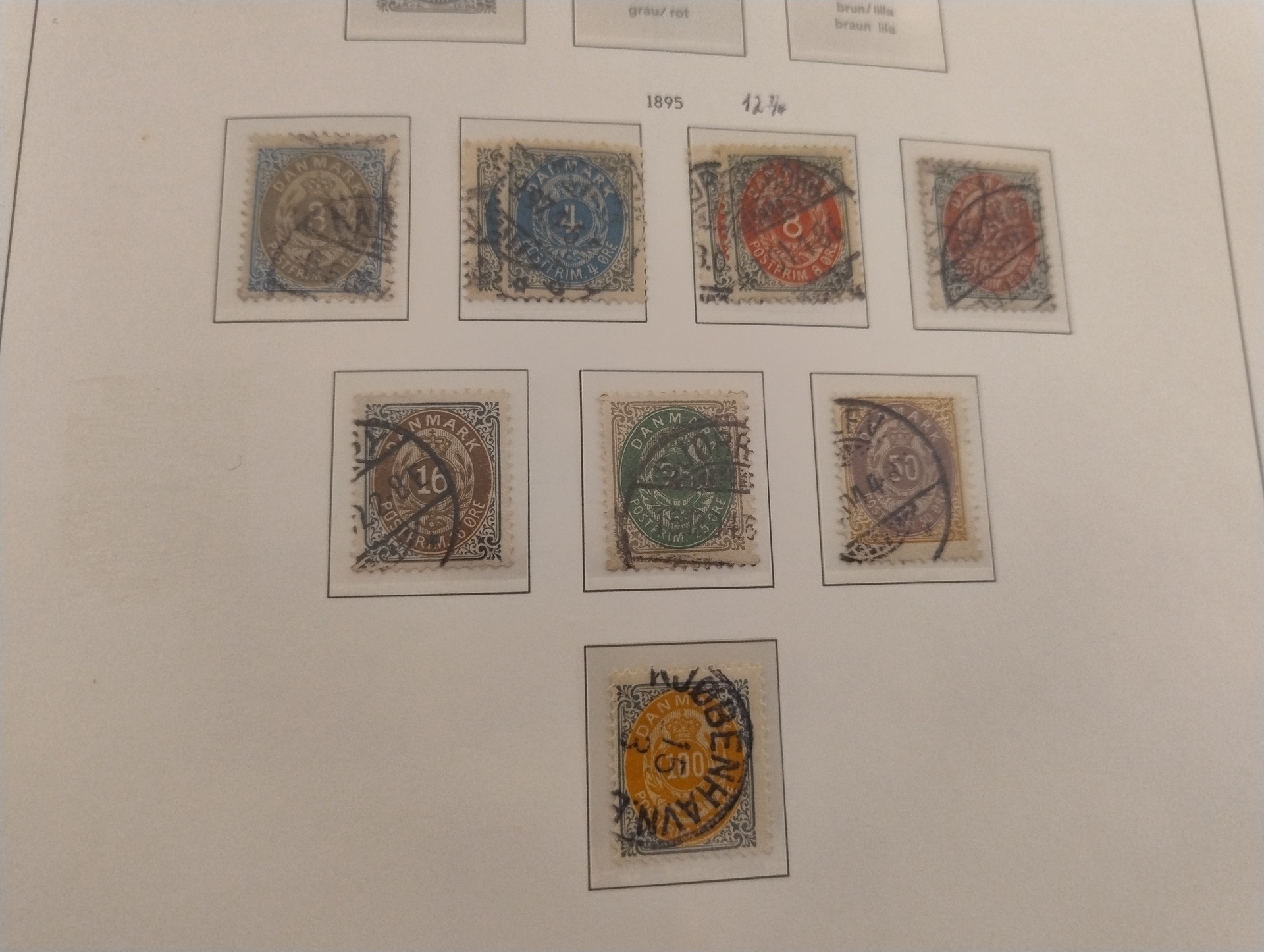 Denmark. Collection/accumulation ★★/★/⊙ 1851–2000 in banana box. Leuctturm album with pockets with used collection incl. some better the earliest in mixed condition. Stockbook with duplicates incl both G.P.O. stamps. Stockcards with back of the book and two glassine boxes with massware and cinderella material. i.e. Christmas labels. Please see a selection of scans at www.philea.se. Somewhat mixed quality. Approx. 11 kg. (1000s)
