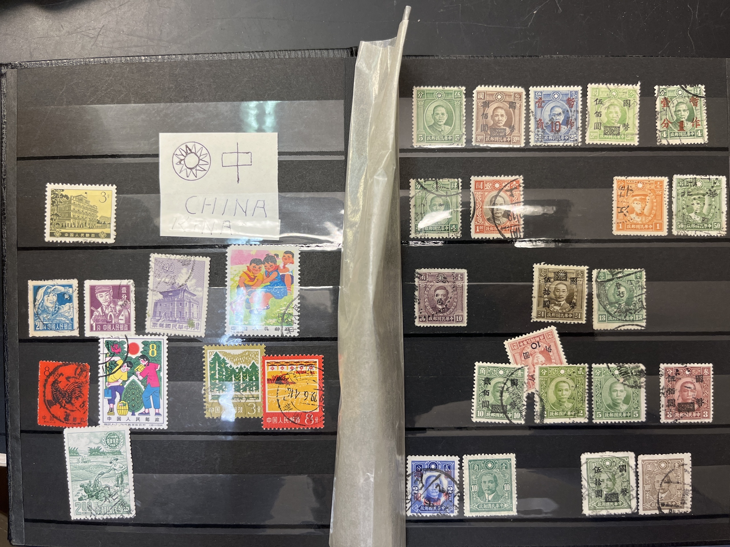 ALL WORLD. Accumulation mostly used in box with ten albums. E.g. Swiss face value and some China. Approx. 9 kg.