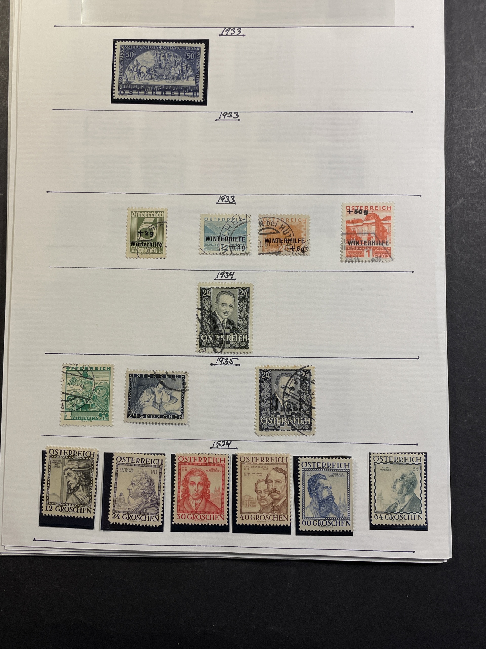Austria. Collection ★/⊙ 1850–1953 on leaves. with many better stamps duplicated early part with mixed mint and used and incl Lombardy. Many Kaiser Franz Joseph stamps incl perf. varities 1908 up to 10kr. Good 1930s with many mint sets. A collection we recommend. Please see a selection of scans at www.philea.se. Mostly fine quality. (1400)