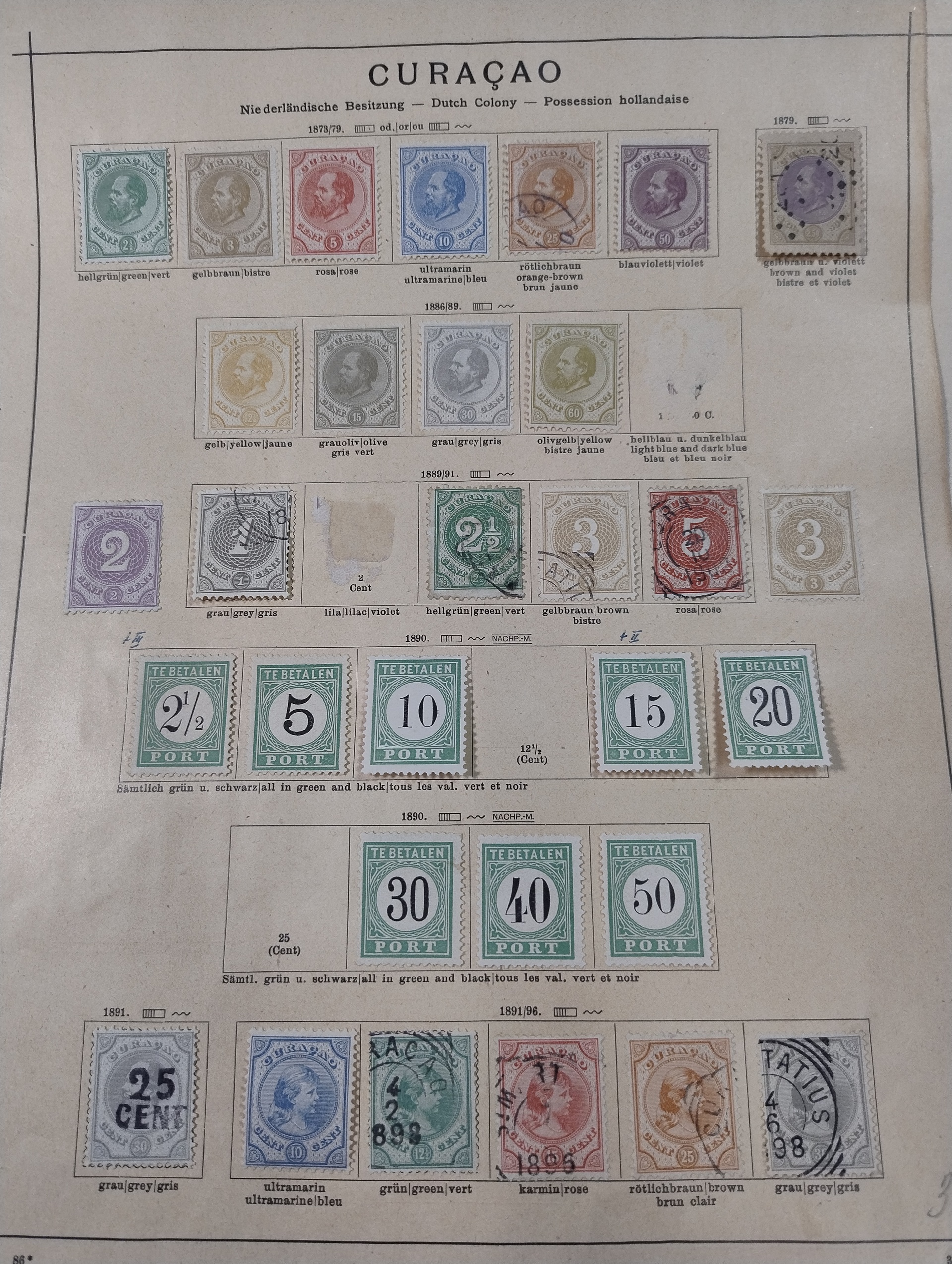 Dutch colonies. Collection ★/⊙ 1854–1920 on leaves. Nice array of early stamps from Cuaracao, Netherlands Indies and Suriname incl. also one page Spanish West Indies. Please see a selection of scans at www.philea.se. Somewhat mixed quality. (250)