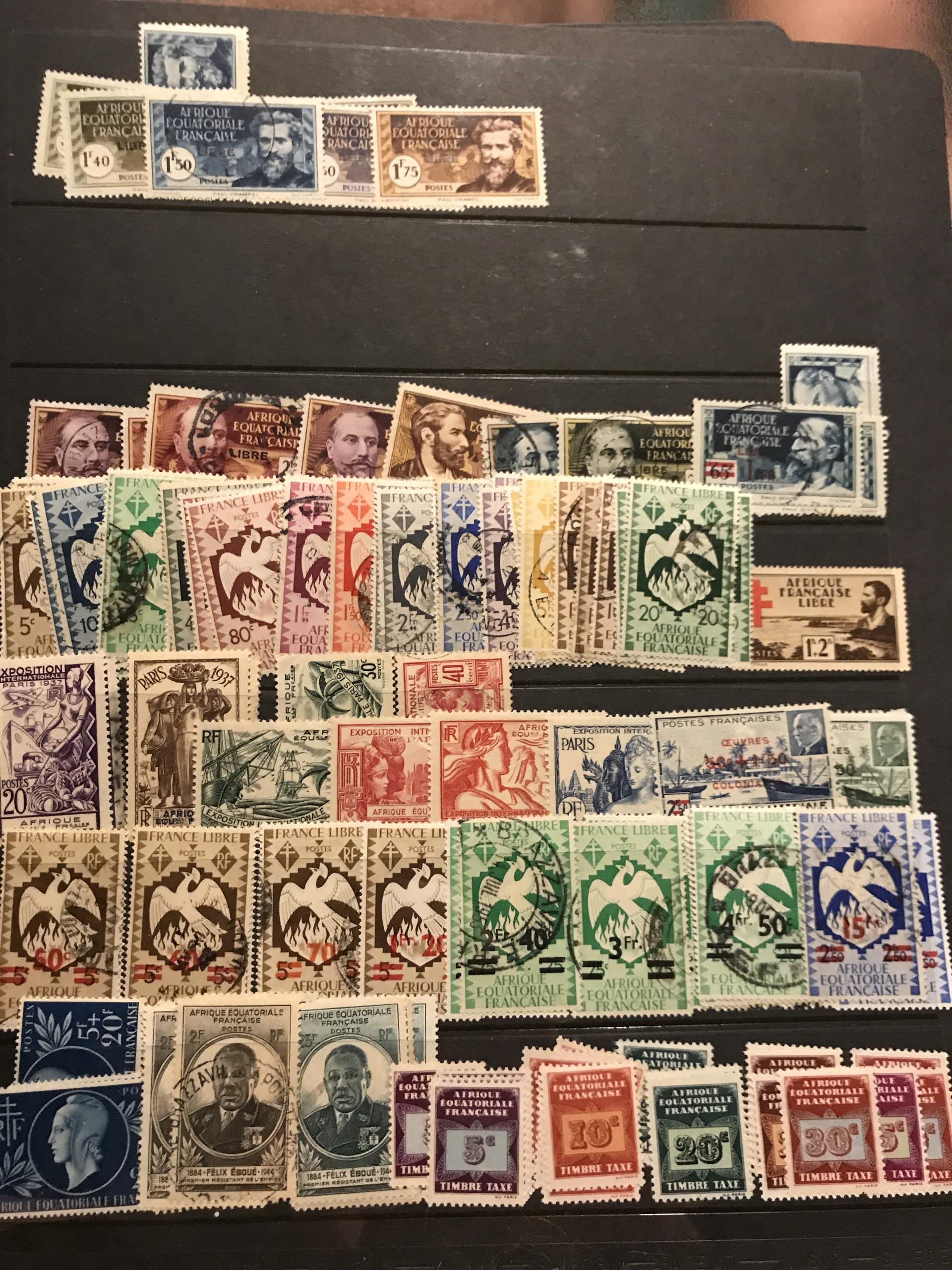 French Equatorial Africa. ★★/★/⊙. Eight Visir leaves with at least 800 stamps until 1959 incl. also French West africa. The entire lot is presented at www.philea.se.