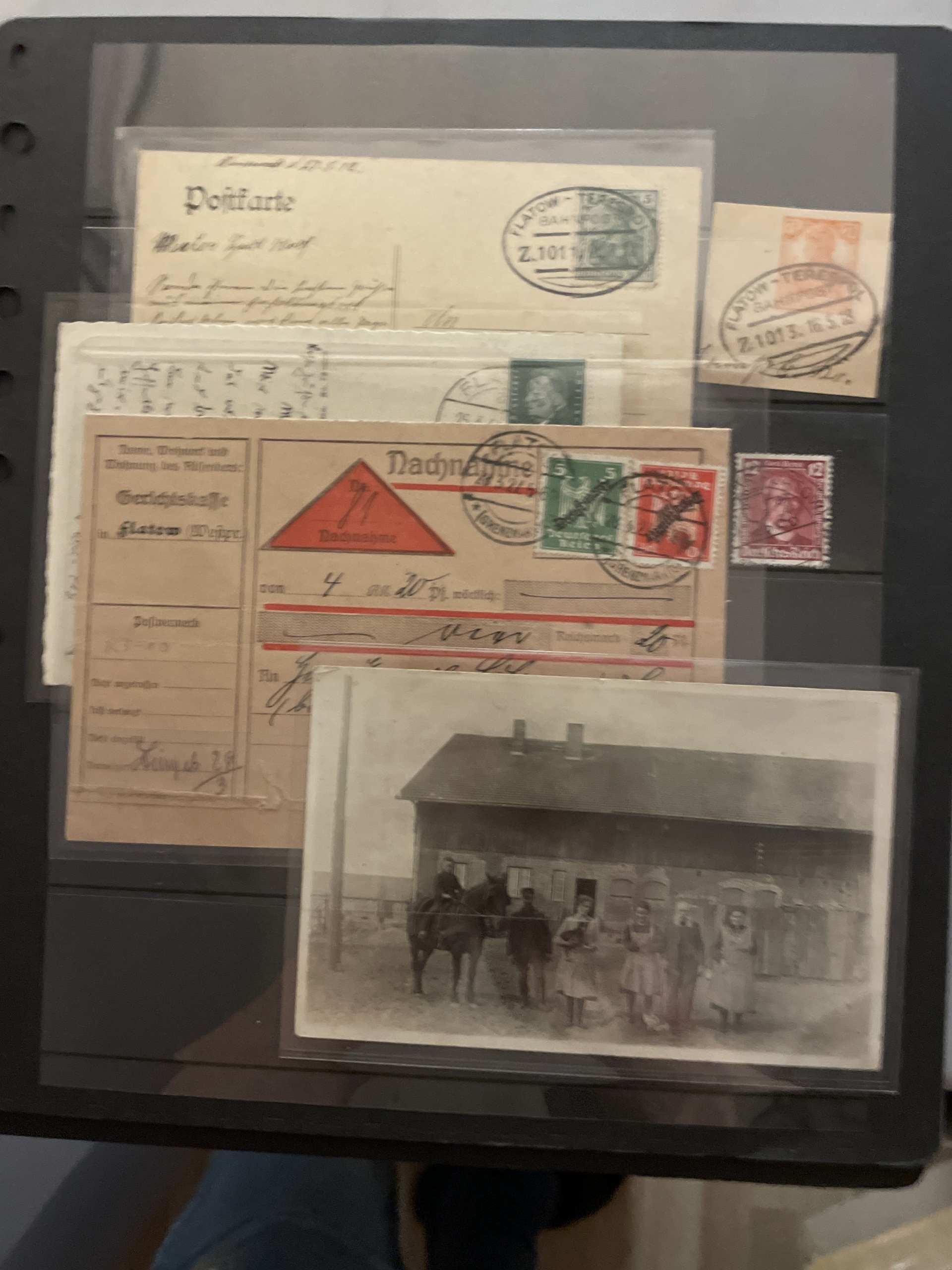 Germany, Prussia. Accumulation used 1878-1943 on visir leaves. 14 covers/postal documents/stamps all from Kreis Flatow (cancelled Flatow), located in Marienwerder, county of Western Prussia. Some items with notes or extra cancellations . also railway mail cancellations in the material. Please see the entire material at www.philea.se. Mostly fine quality.