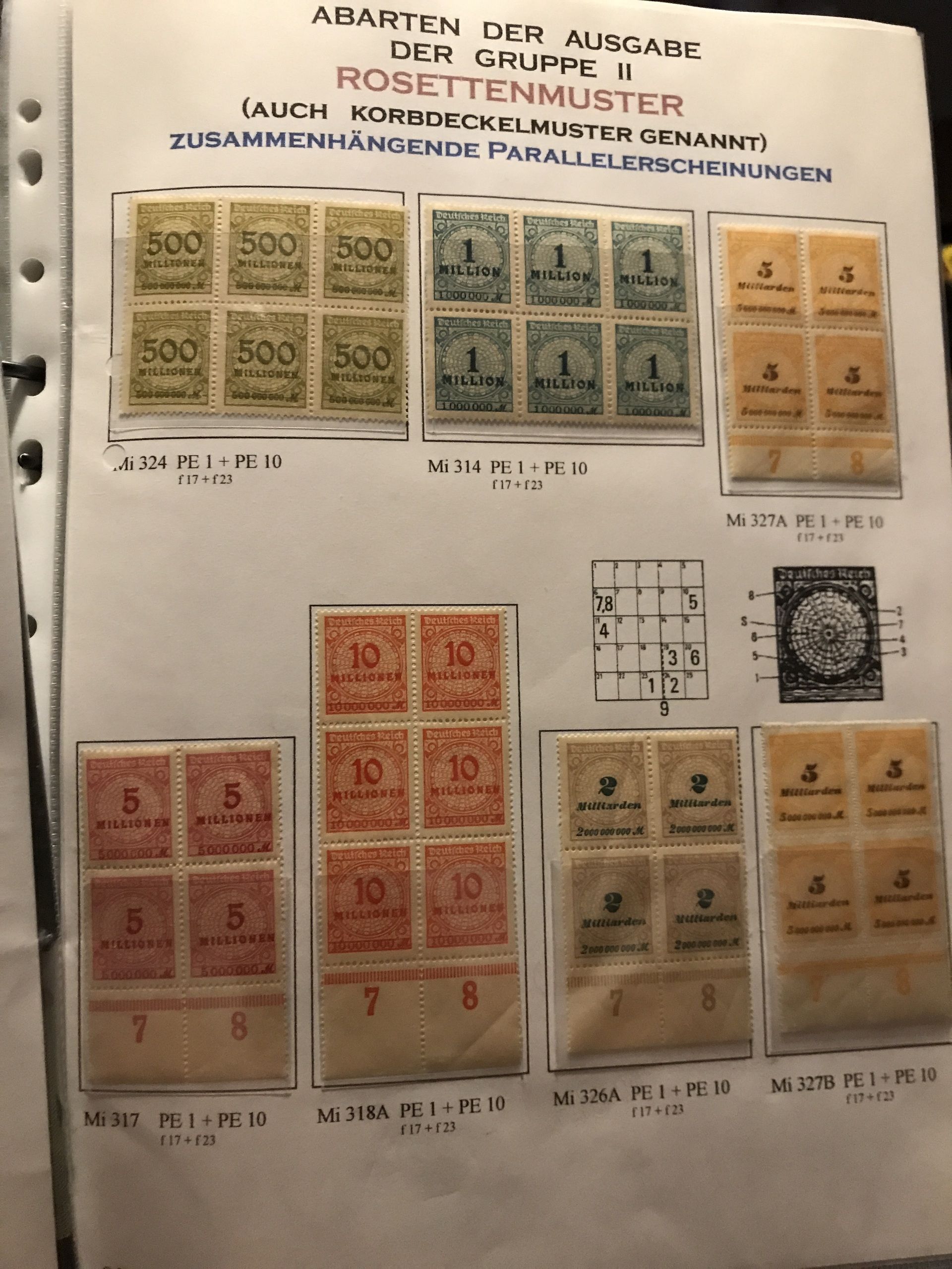 Germany, Reich. ★★/★/⊙. A very comprehensive and specialized collection to say the least Mi313–43 + Official stamps (Rozetten Korbdeckel-Muster) in thick binder with explanatory text. Containing several plate cracks, varieties and shades incl. many units. Unique opportunity to acquire an extraordinary collection. Please see a selection of scans at www.philea.se.