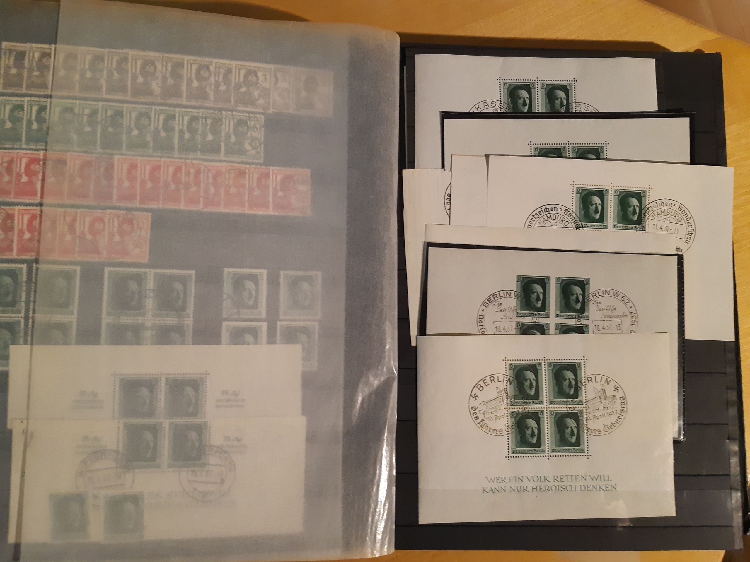 Germany, Reich. Collection used 1930s–1945 in large stockbook. Sorted duplicates incl. a few souvenir sheets. Favourable. Mostly good quality. (1500)