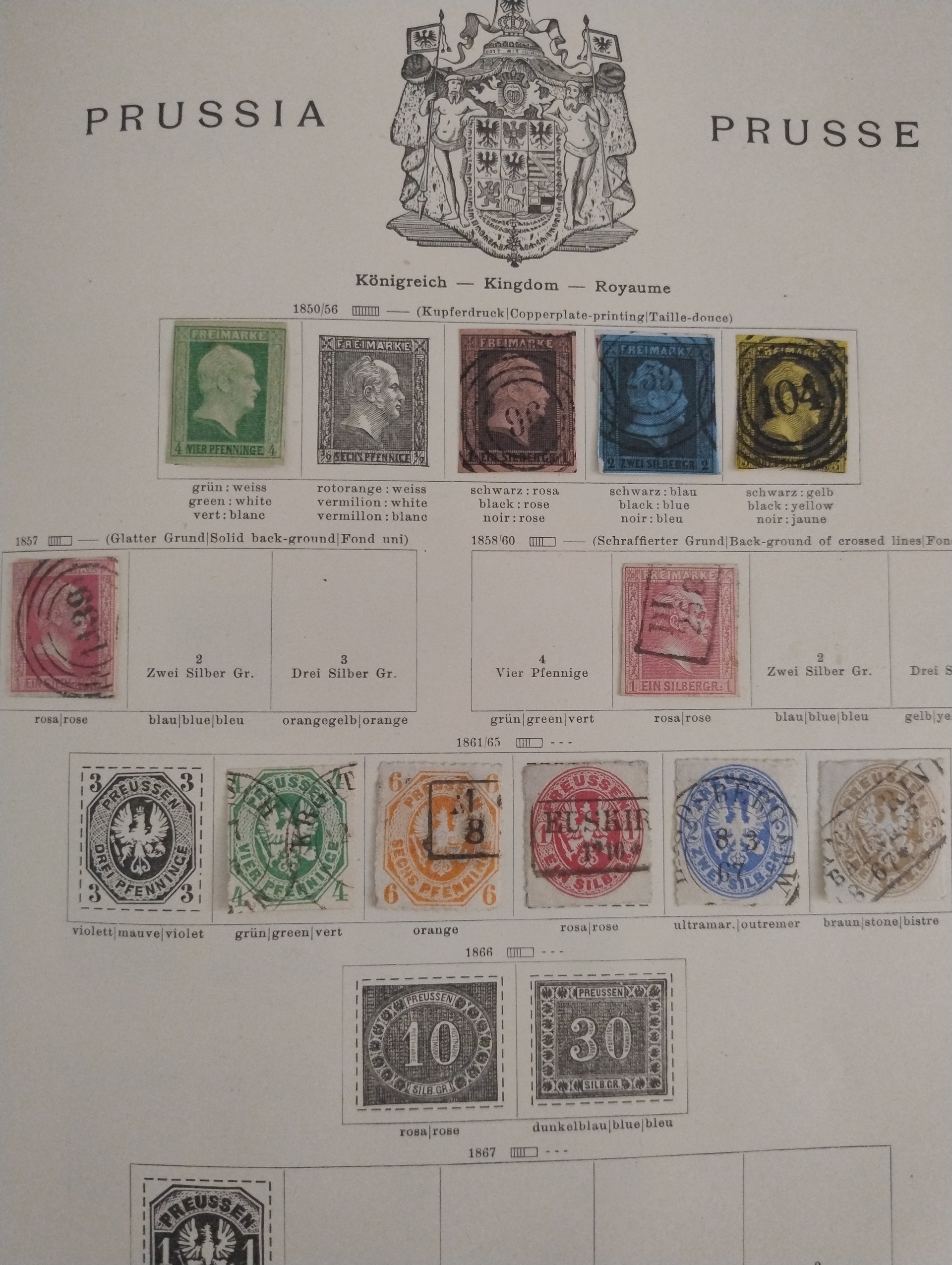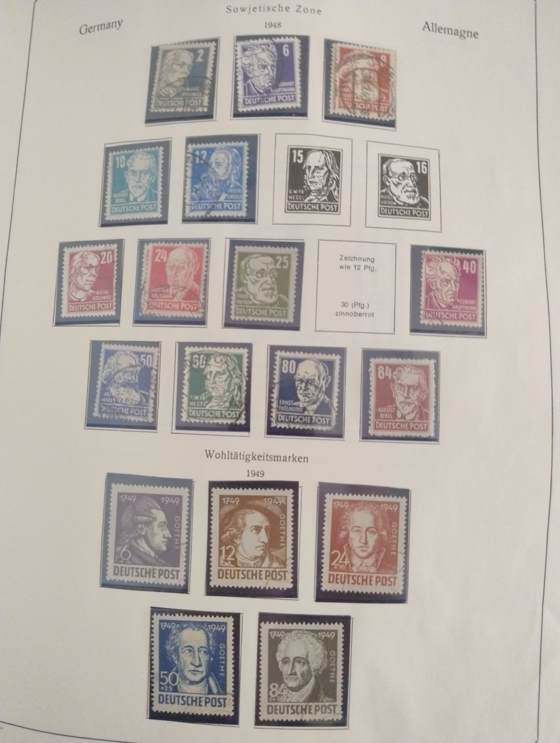 Germany, mixed. Collection/accumulation ★★/★/⊙ 1849–1969 in box. Two thick Ka-Be albums with a collection 1872–1969 incl. GFR, GDR and Berlin, one old Shaubek album 1849–1945 incl. some states and one stockbook with accumulation French Zones. Please see a selection of scans at www.philea.se. Good quality. Approx. 8 kg. (1000s)
