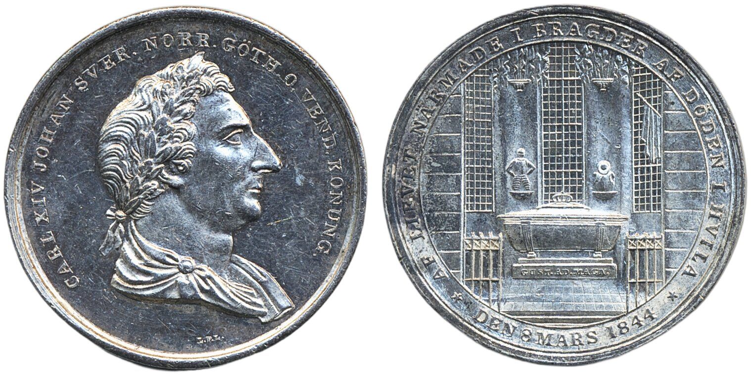 Coins, Sweden. Karl XIV Johan, SM 177, Largesse medal (½ riksdaler specie) 1844. 12.75 g. 1/1+.