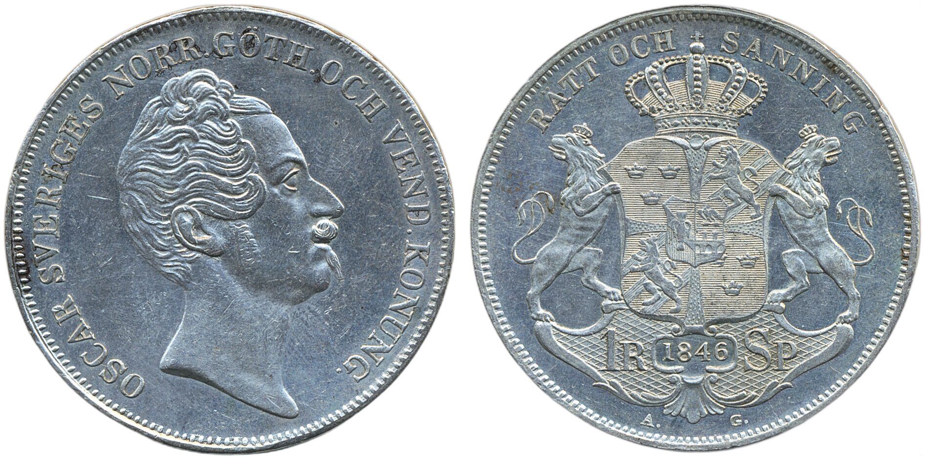 Coins, Sweden. Oskar I, SM 27, 1 riksdaler specie 1846. Scratch. 01.