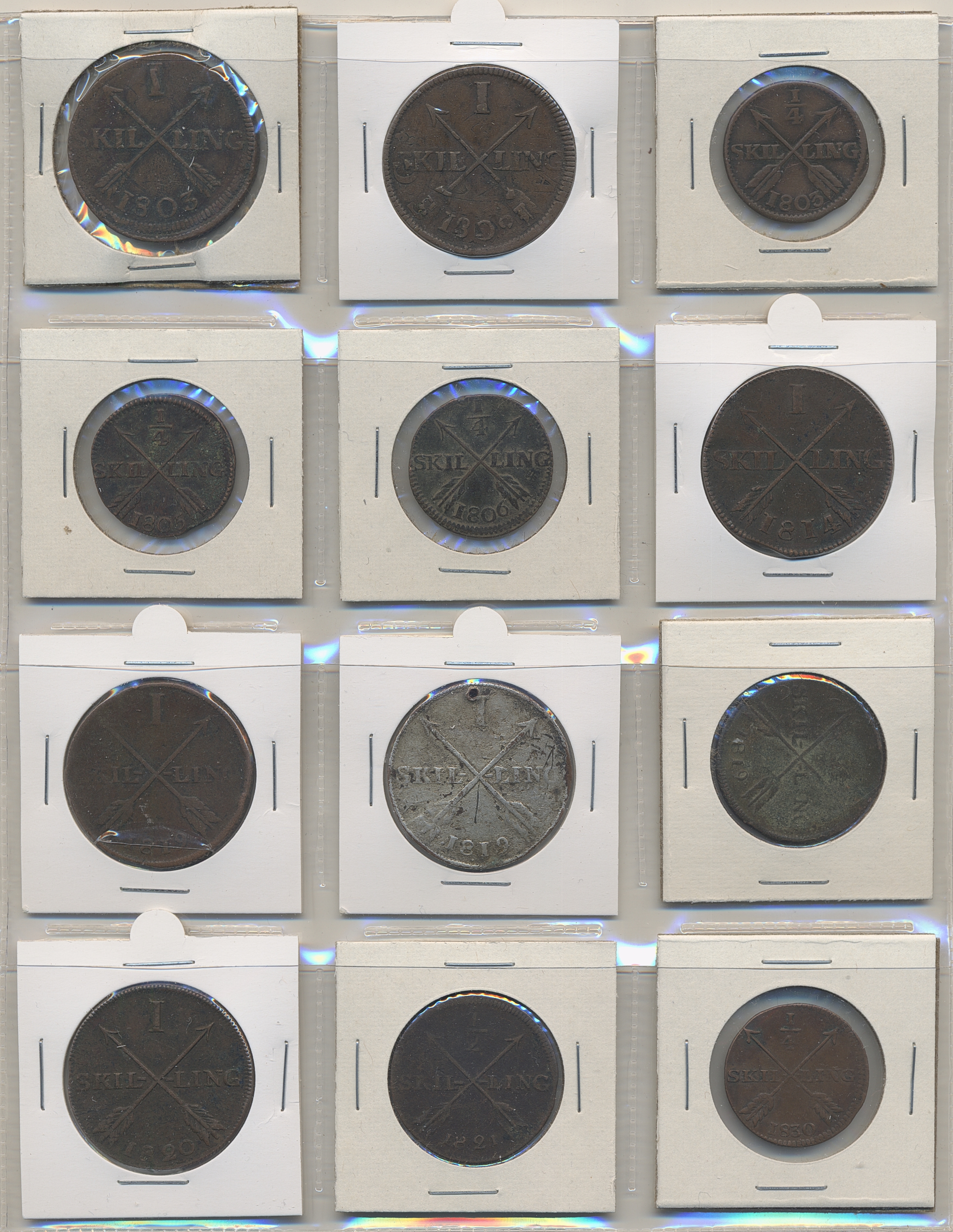 Coins, Sweden. One album with 55 coins in bronze and silver, 1803–1873, mixed quality. .